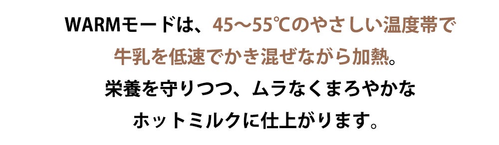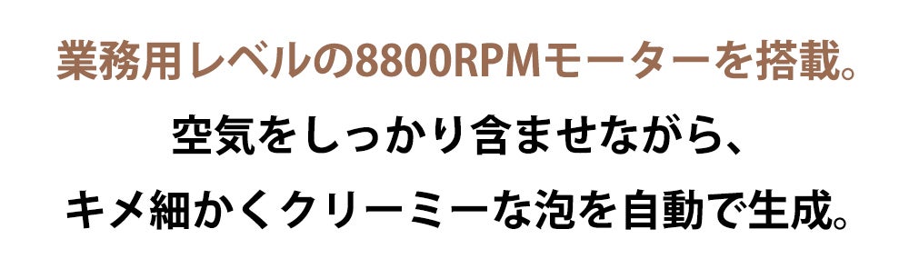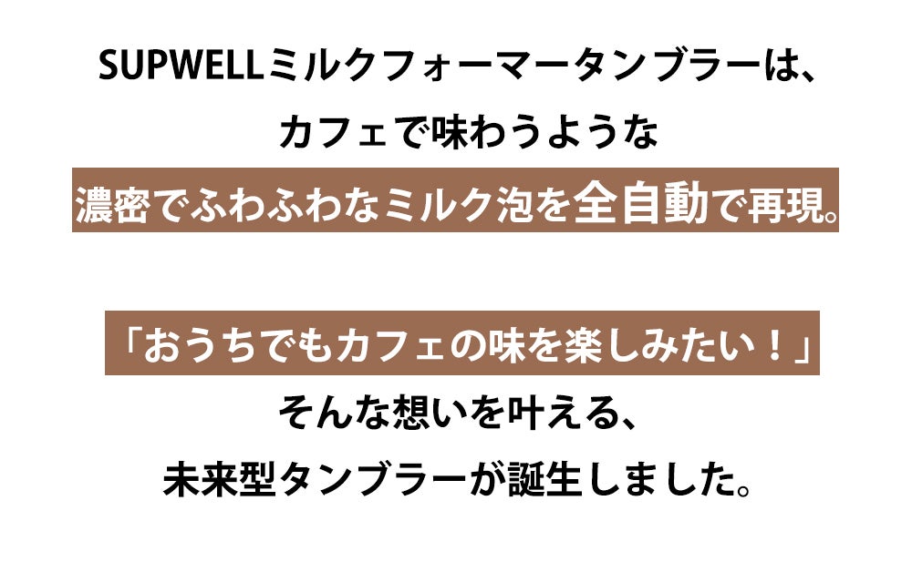 これに対し、SUPWELLの「フォームミルク」は、高速回転で空気を均一に取り込むため、牛乳100%のきめ細やかでふわふわな泡立ちが実現。