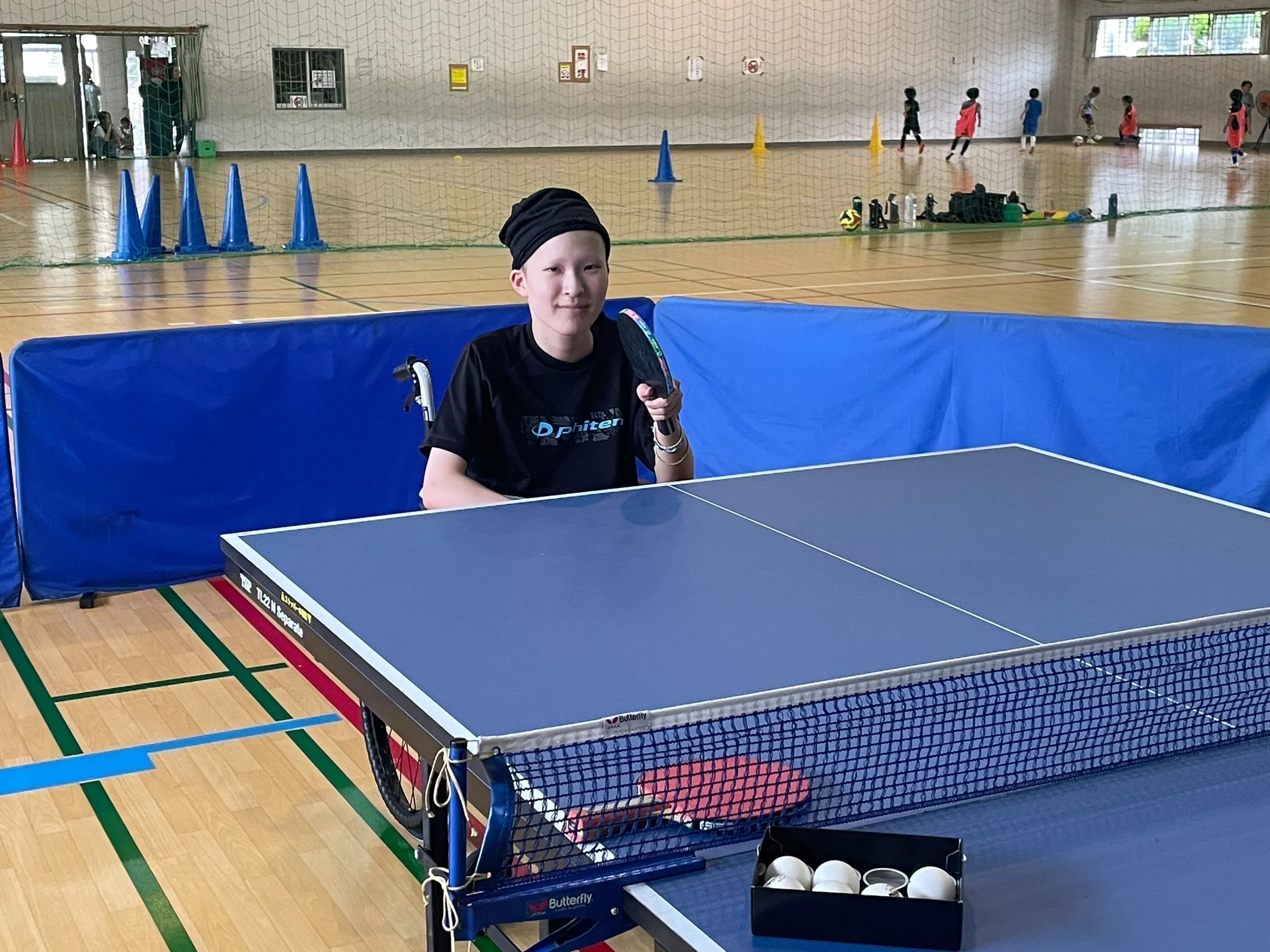 新しい試みとしては、2025/6月よりスタートした車椅子卓球の練習場所の確保も実現したいと思います。私の生徒の中には小学2年生から当クラブに入部し、小学生時代は地道にしっかりと練習し中学になり県でも1位や2位まで昇り詰めた生徒がいます。しかし、小学生の高学年から病気になりこれまで入退院を繰り返し、退院している時は学業や練習や大会を頑張り、息子と同じ高校に進学しましたが病気が重くなり中々学校にも大会にも部活にも出れずだった生徒がいます。現在は病気により足が動かせなくなり車椅子にて移動や生活をし、まだ入退院をしている状態ですが、私は彼に車椅子卓球で頑張ってみない?と提案し彼もそれを受け入れてくれました。そして6月より公共施設のスペースをお借りして数回、練習を行いました。しかし気温が高いこの時期や寒い冬場、車いす専用の卓球台がない状態では、中々練習もはかどりません・・・・。しかも卓球場は2階。彼は入場するのも大変です。ですので、違う場所をお借りしてそこに車椅子専用の卓球台を購入し、冷暖房があり気温も気にせずに練習が出来るようにできればと考えています。そして車椅子でも卓球が出来るよ!というPRの元、車椅子卓球の普及にも努めたいと思っています。そういう特殊なレッスンもできる場所が中々ない現状なので、作ることが出来ればどうしても卓球がしたくても出きない方々への仲間づくりや夢のお手伝いの空間を作ることが出来ます!!そこも目指したいところです!!