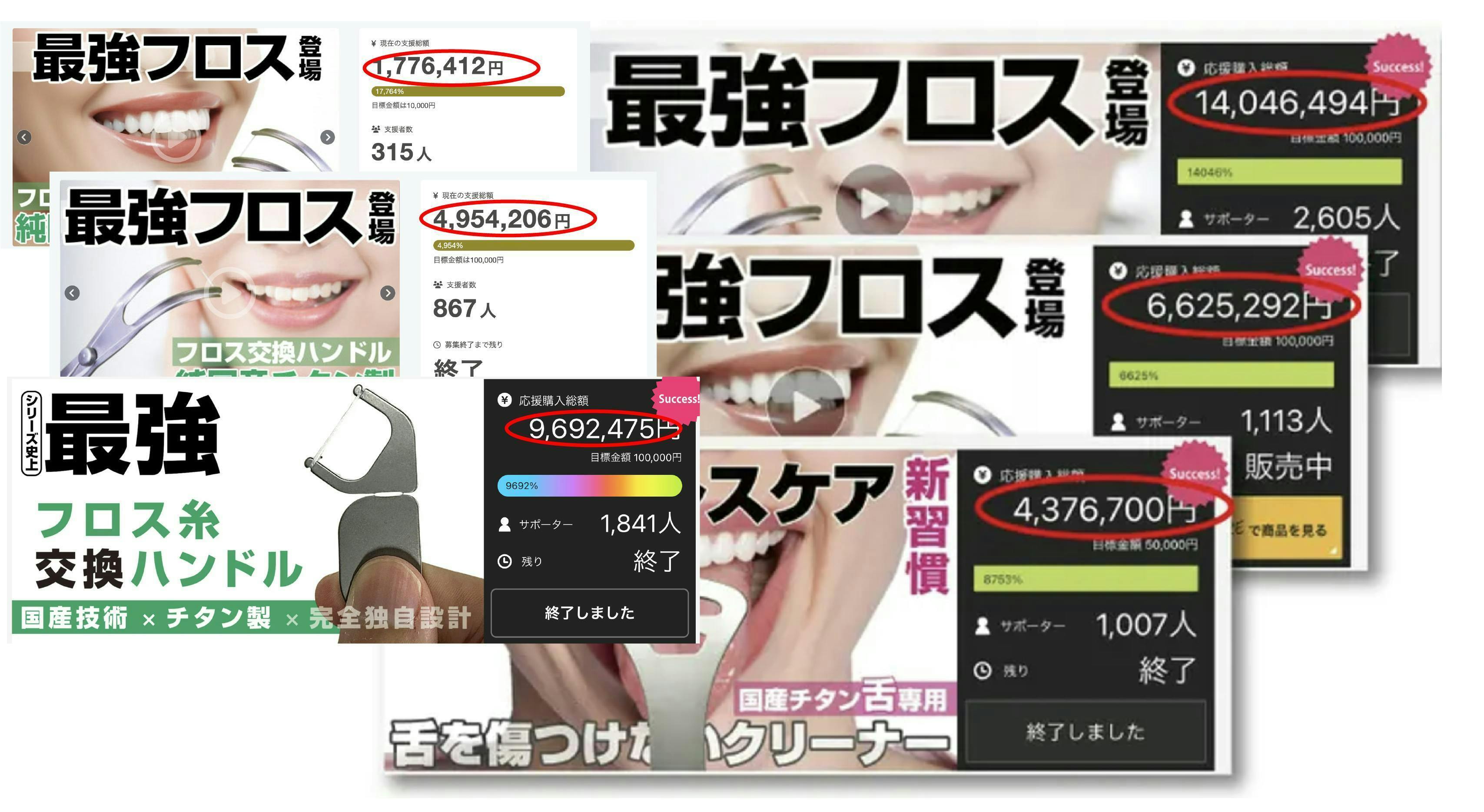 2025/08/06 10:57サポーターの皆様この度は皆様からの暖かいご支援誠にありがとうございます。「国産チタン製フロス交換ハンドル3」目標達成!!スタッフ一同、感謝申し上げます。本作は、累計3800万円の大ヒットシリーズですが、前作を踏襲せず、0から完全独自設計でプラ製しか作れなかったF型フロスをチタン製で完全再現した逸品です。より操作性もUPし、よりパワフルかつ緻密なフロス操作を実現。お手入れは水洗いでOKな「一生モノの口腔ケアグッズ」として仕上げました。口腔ケアにおいて、本当に問題なのは歯磨きはできるけれど...「デンタルフロスが面倒で続かない」「フロスが習慣化できない」この深刻な悩みの解決策として本プロジェクトが皆様に貢献できれば幸いです。引き続きのご支援をよろしくお願い致します! もっと見る