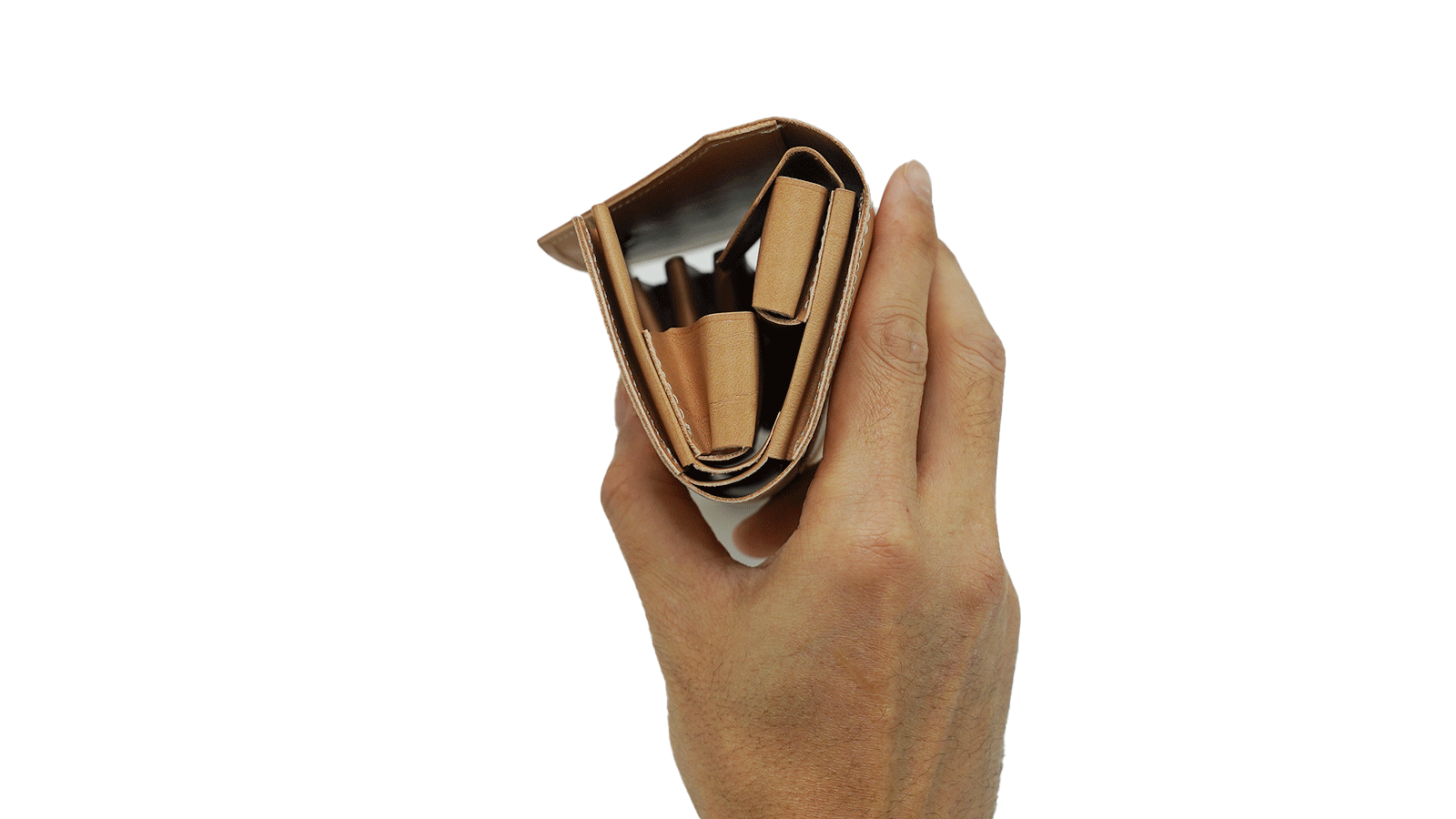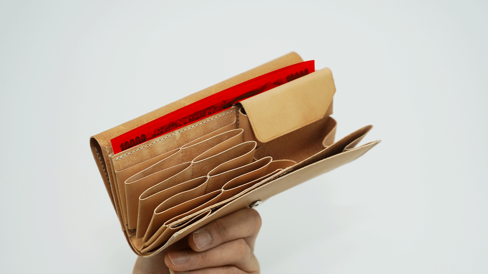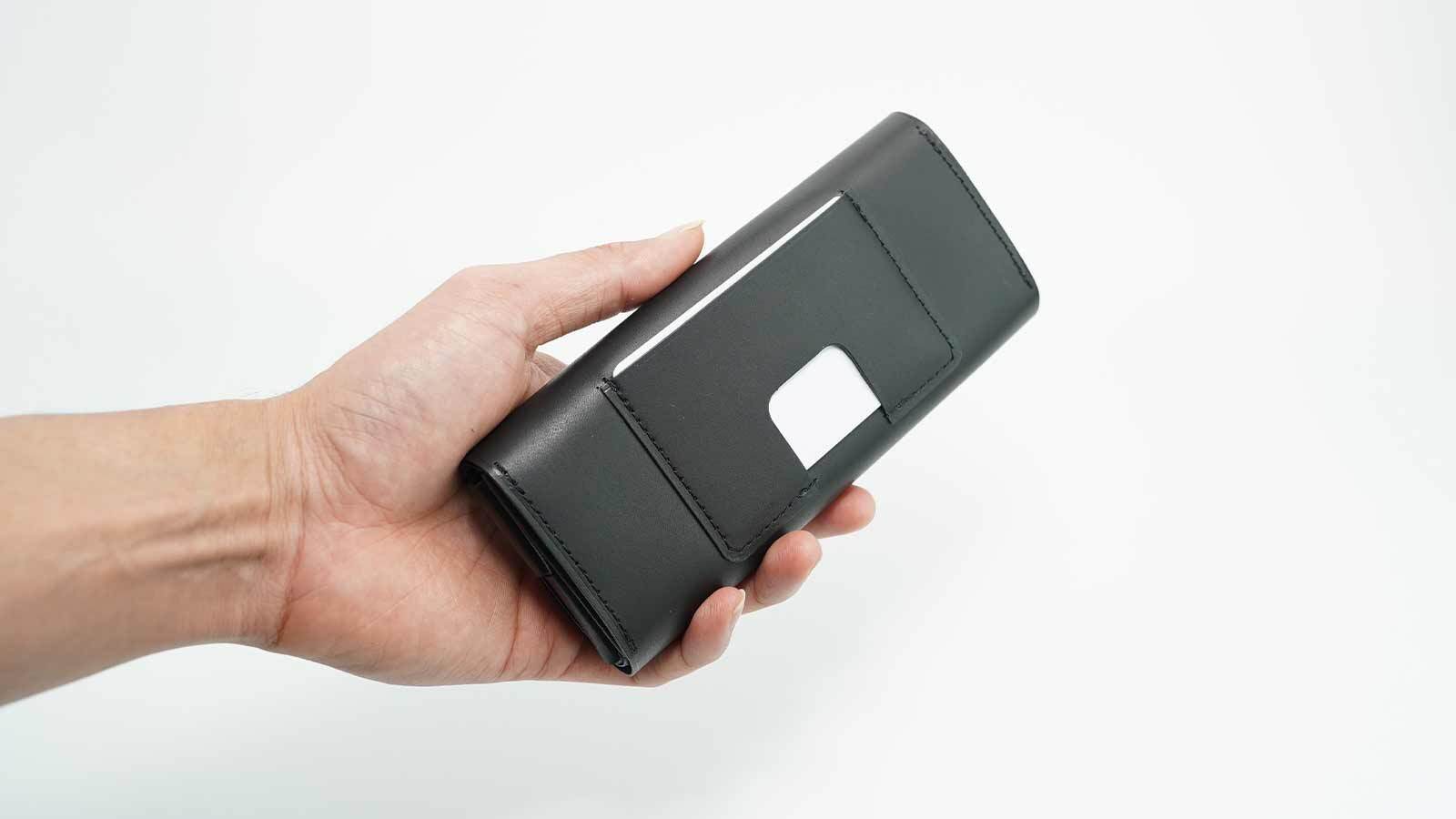 さらに、フタ側も同様にカーブを描く設計になっており、閉じた際にはその曲線に沿って紙幣が収まるため、全体の幅を抑えることが可能に。