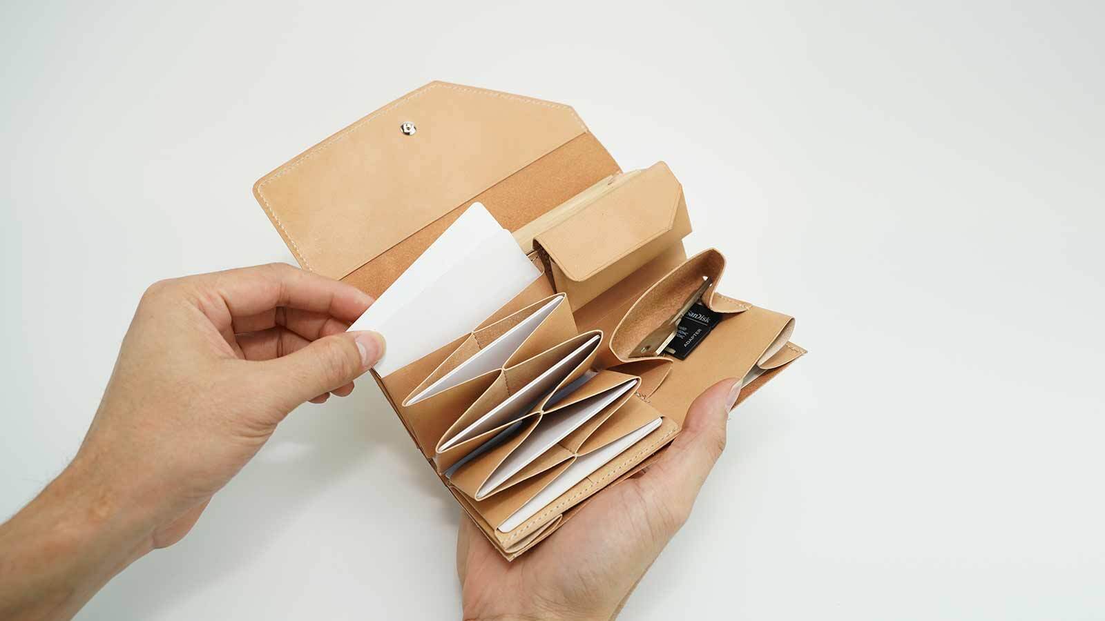 5つの独立したポケットにより、カードを種類別に整理しやすくなっています。