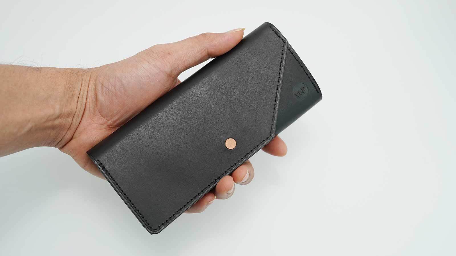 決して薄型ではありませんが、適度なボリューム感が革の重厚さを際立たせ、落ち着きのある大人の格好良さを演出するデザインに仕上がっています。