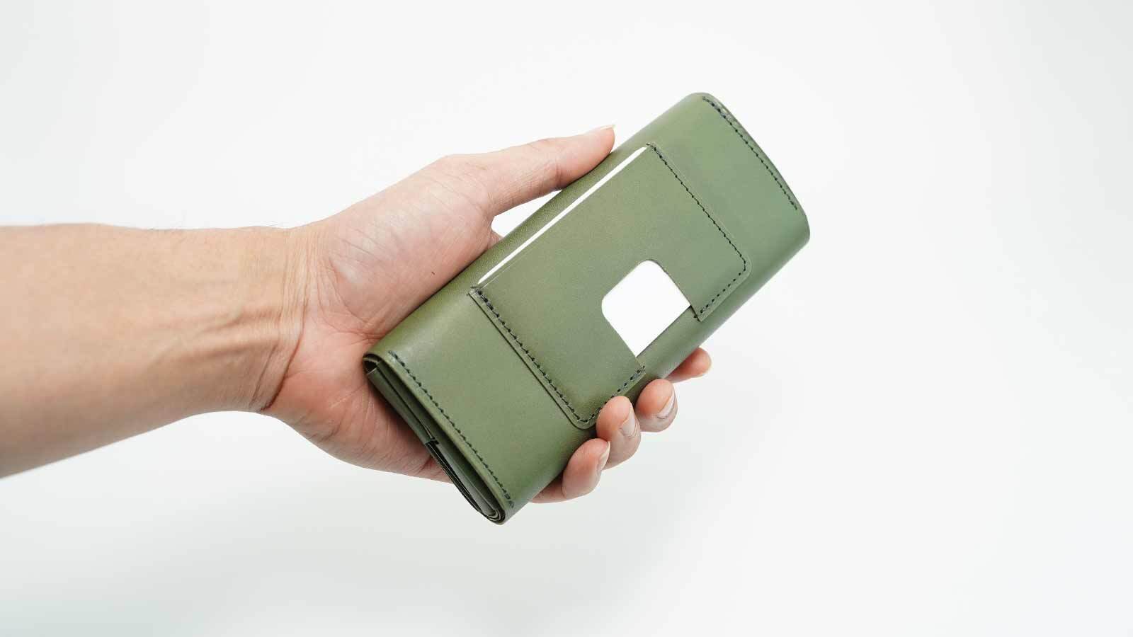 正面からこの財布を眺めると、どこかスッとしたスマートな印象を受けませんか?