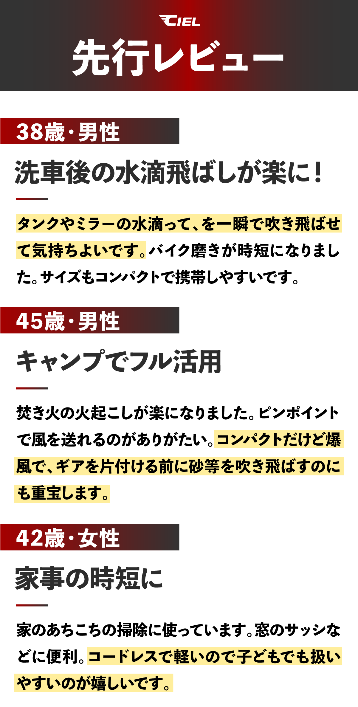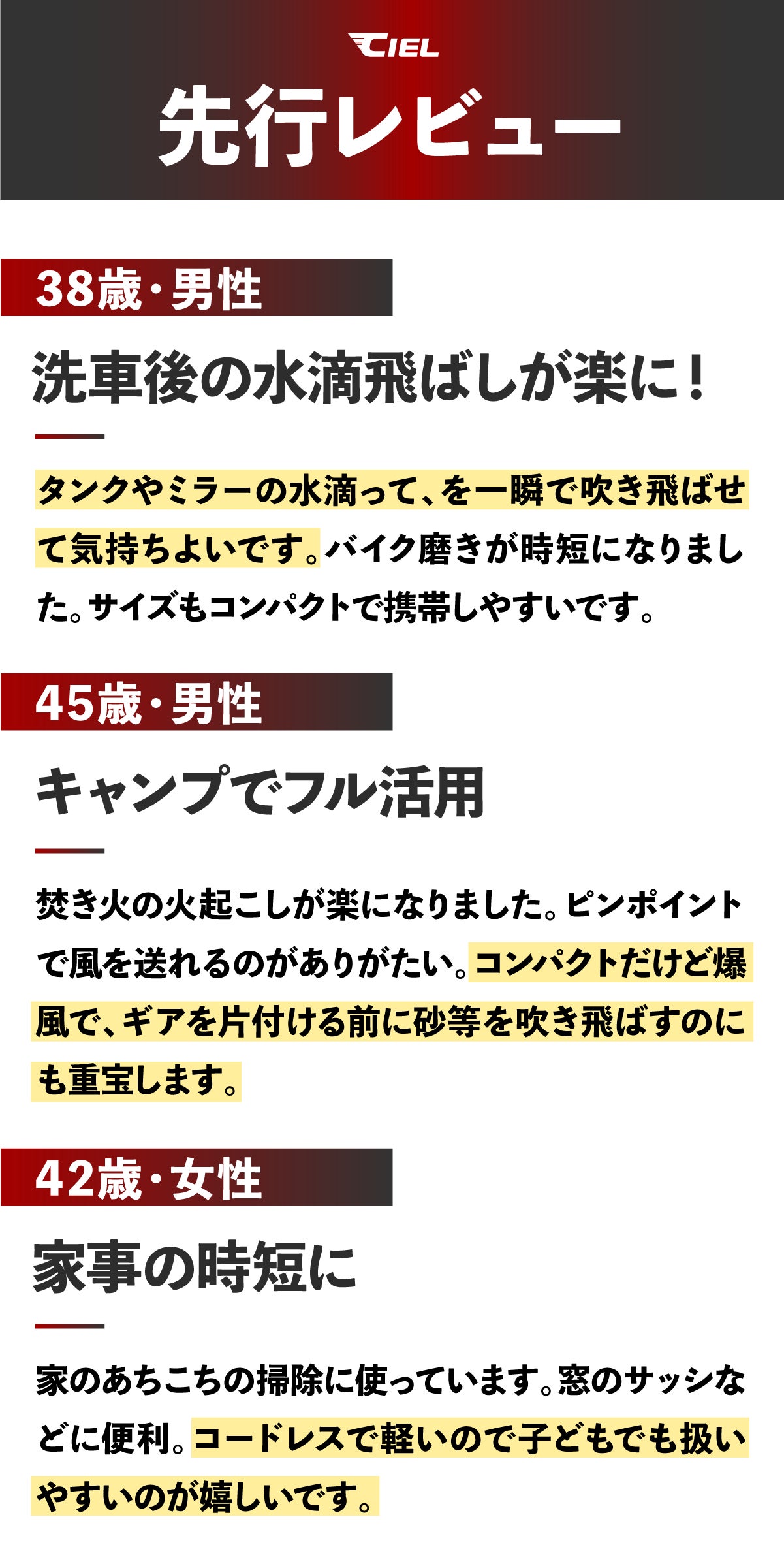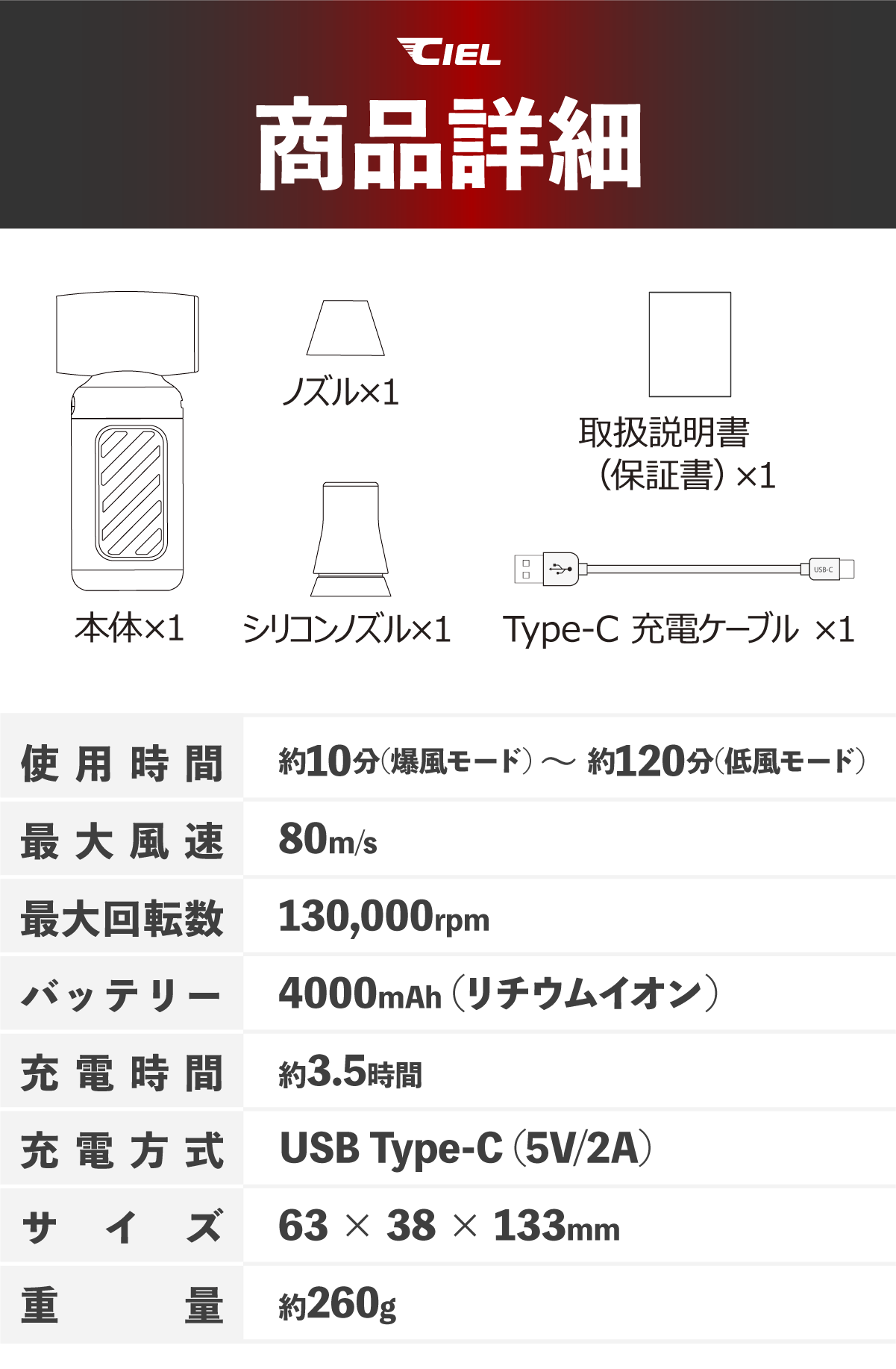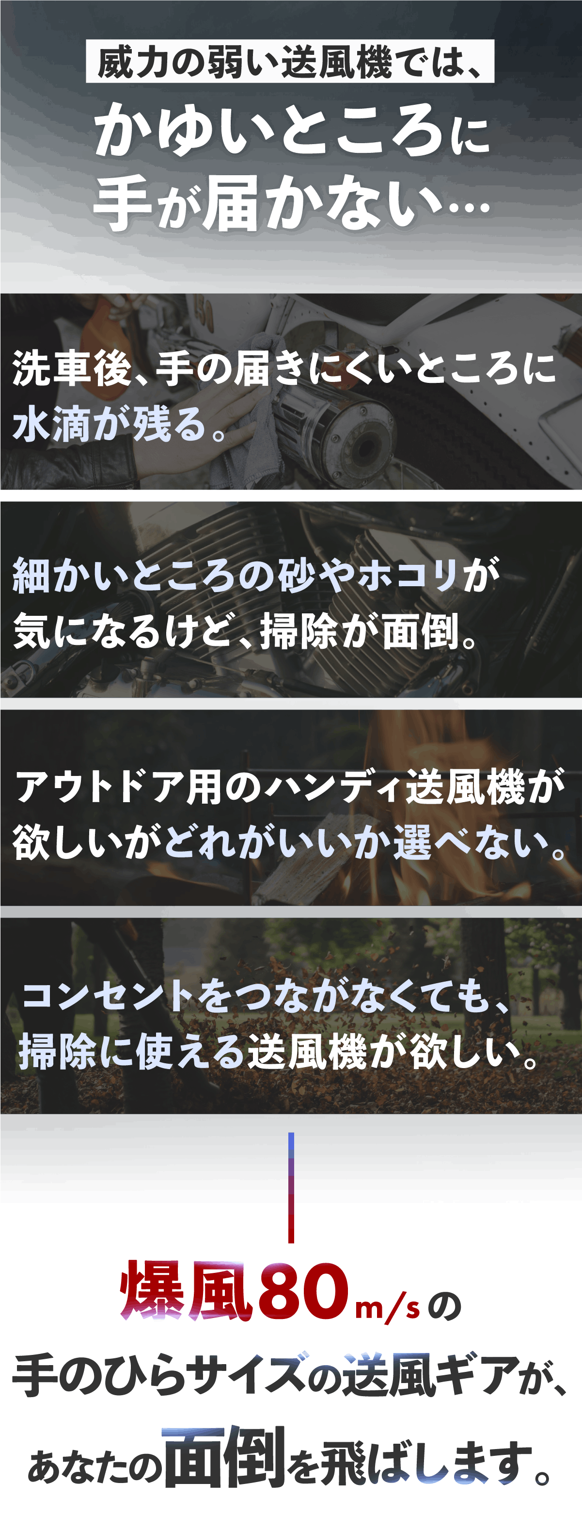 小型ながらも圧倒的な送風力で、あなたの作業を強力にサポート。清掃以外にもアウトドアやキャンプの火起こし、掃除にも使える、多用途に活躍する一台です。
