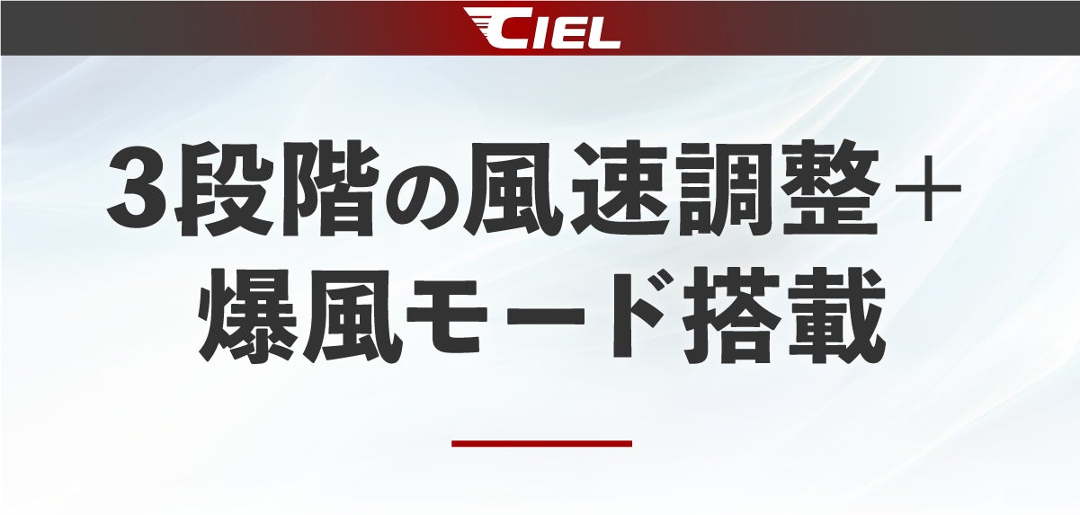 用途に応じて風速を弱・中・強の3段階で調整可能。それ加え爆風モードも搭載しています。軽いホコリ飛ばしやデリケートな部分には弱風、洗車後の水滴飛ばしには爆風と、シーンに合わせて自在に使い分けられます。