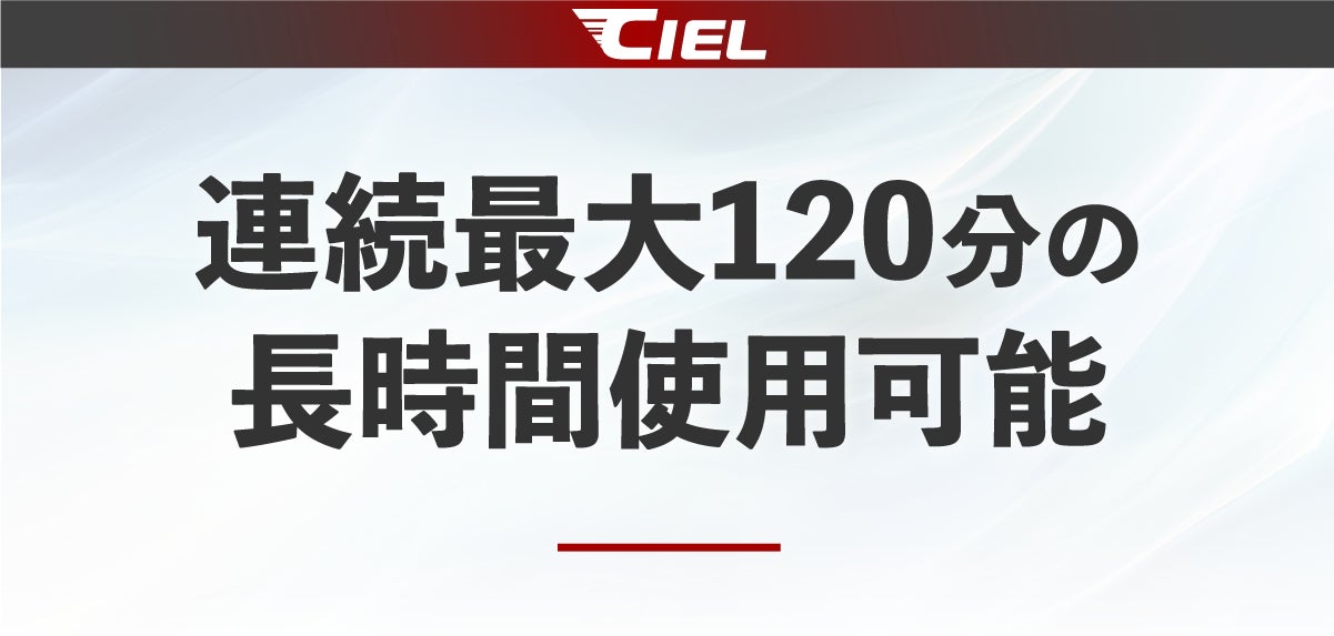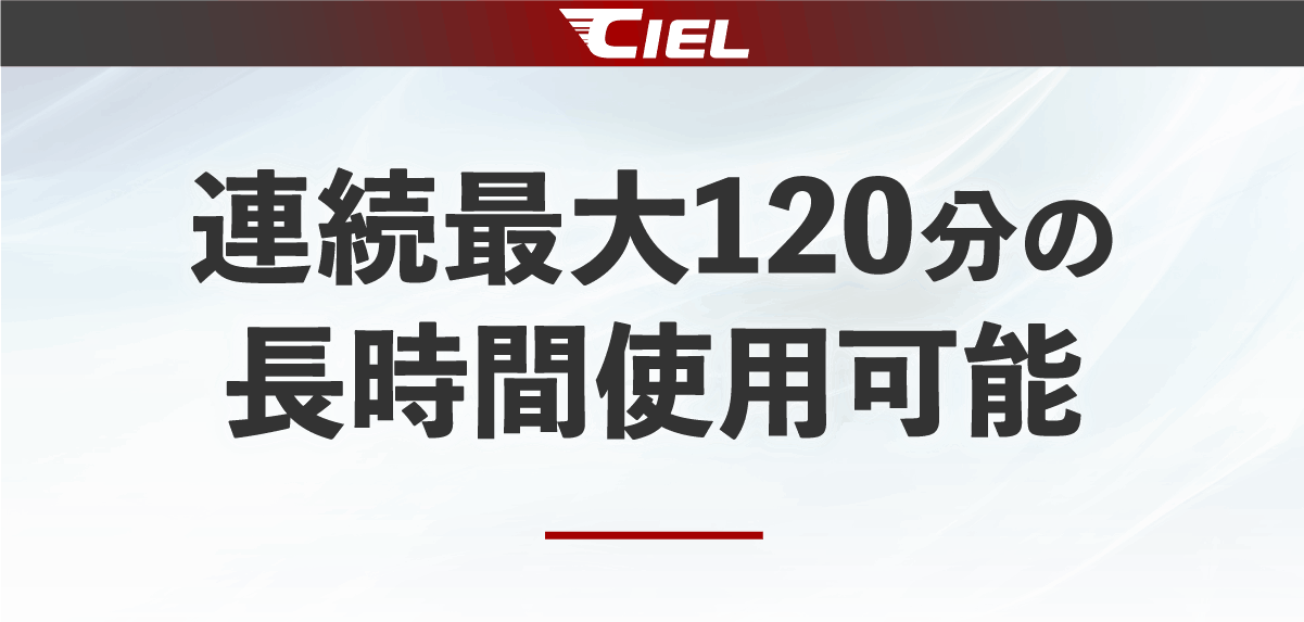 低風モードなら、フル充電で最大約120分の連続使用が可能。一度の充電で、複数の作業をまとめてこなせます。