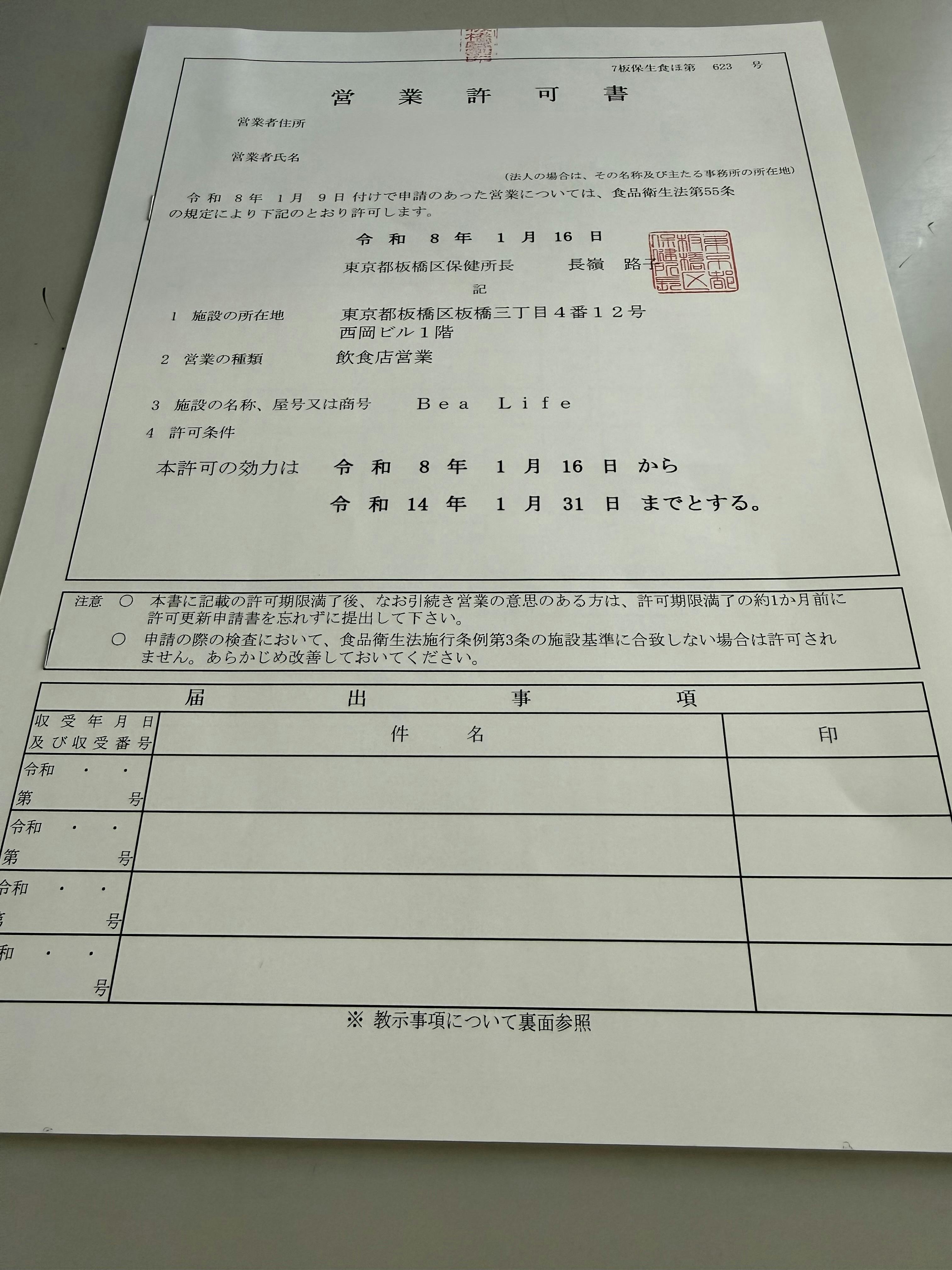 まだ細かな調整や準備は続きますが、この営業許可をもって、次は深夜営業許可証の申請書類の提出準備に入ります。