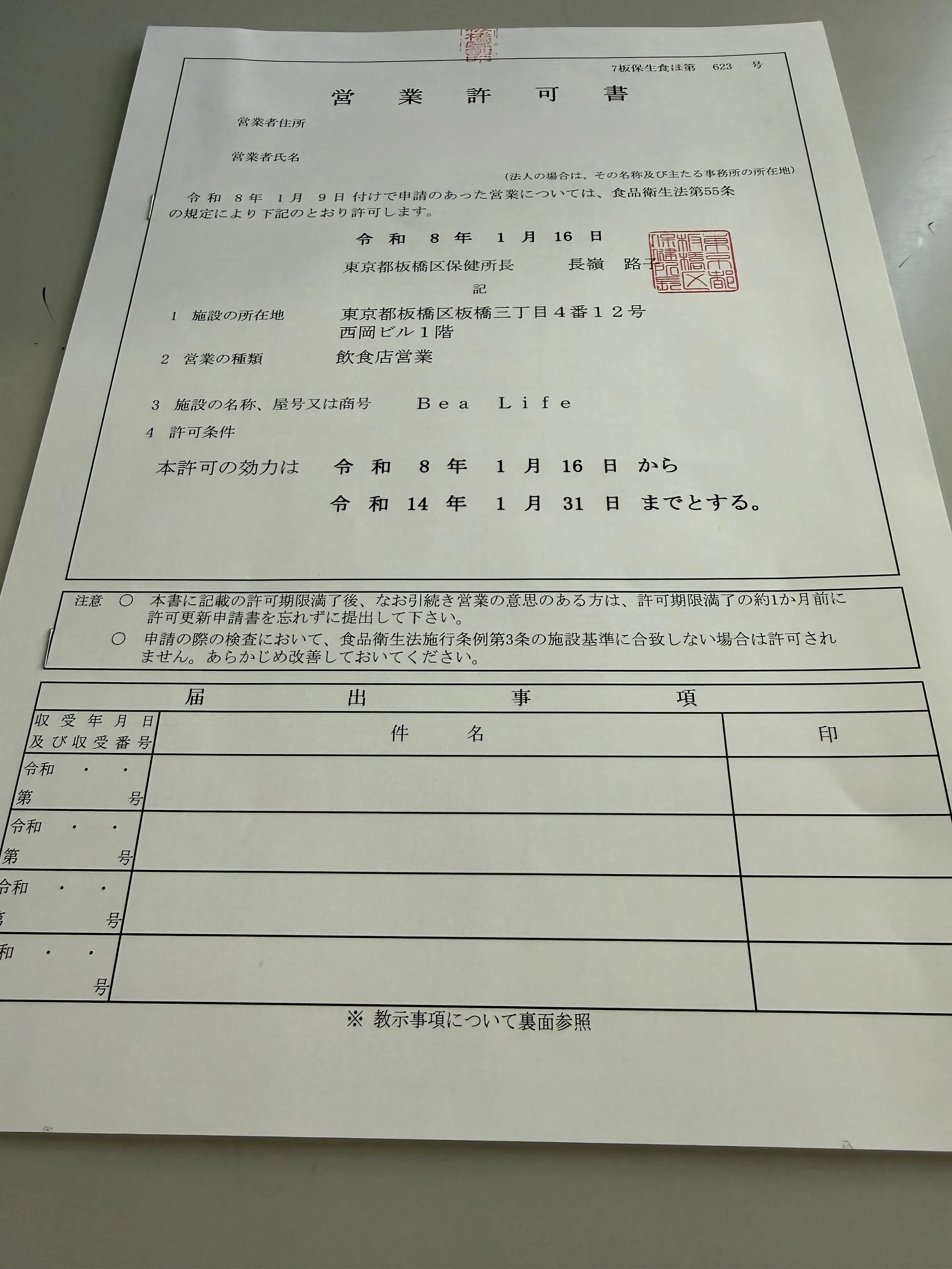 先日もお伝え致しましたが、本日、正式な営業許可証を頂いて参りました。