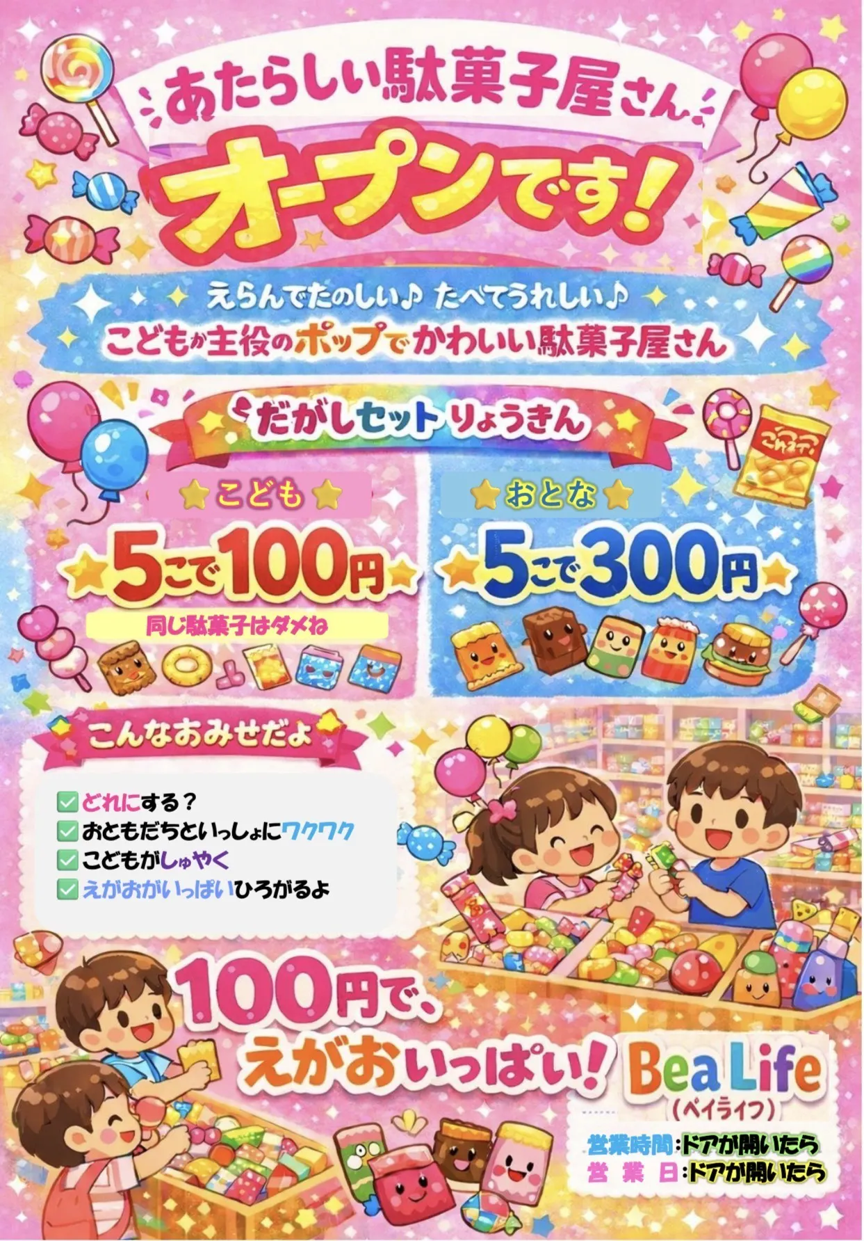 駄菓子が揃ってきましたので、日中の時間帯に、駄菓子屋としてもお店を開けてみることにしました!