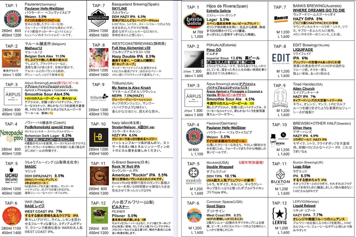 特にクラフトビールにはこだわりを持っていて、ヨーロッパを中心とした世界各国12種類をタップ(生ビール)で楽しむことができます。