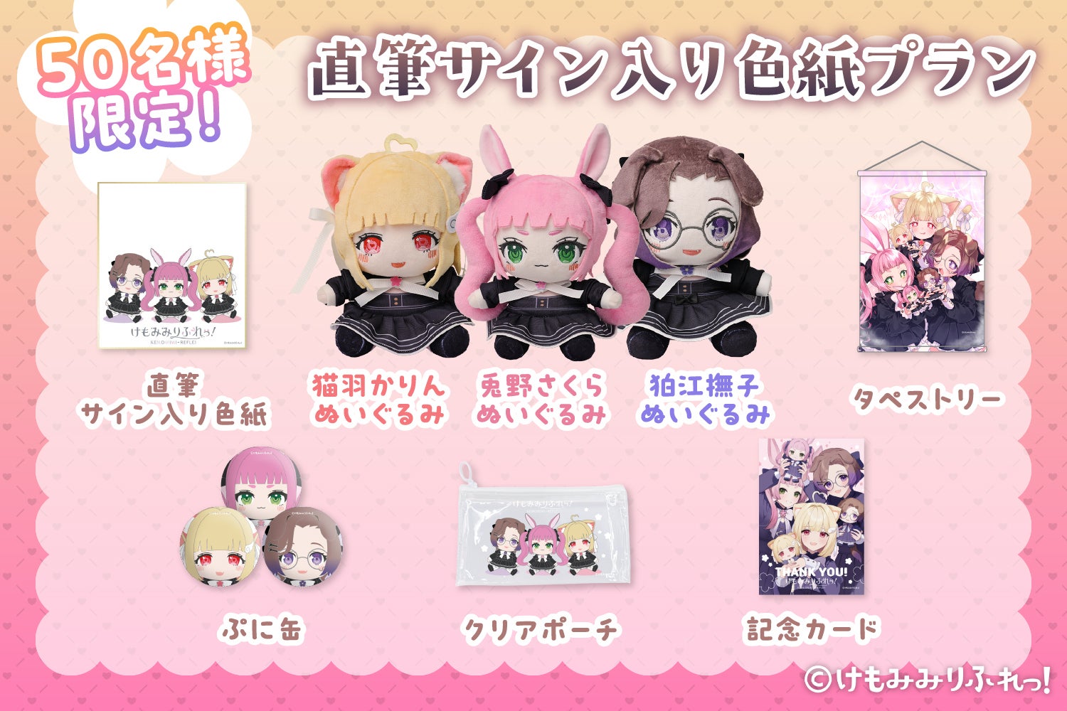けもみみりふれっ!3人の直筆サイン入り色紙とグッズがゲットできるプラン!
