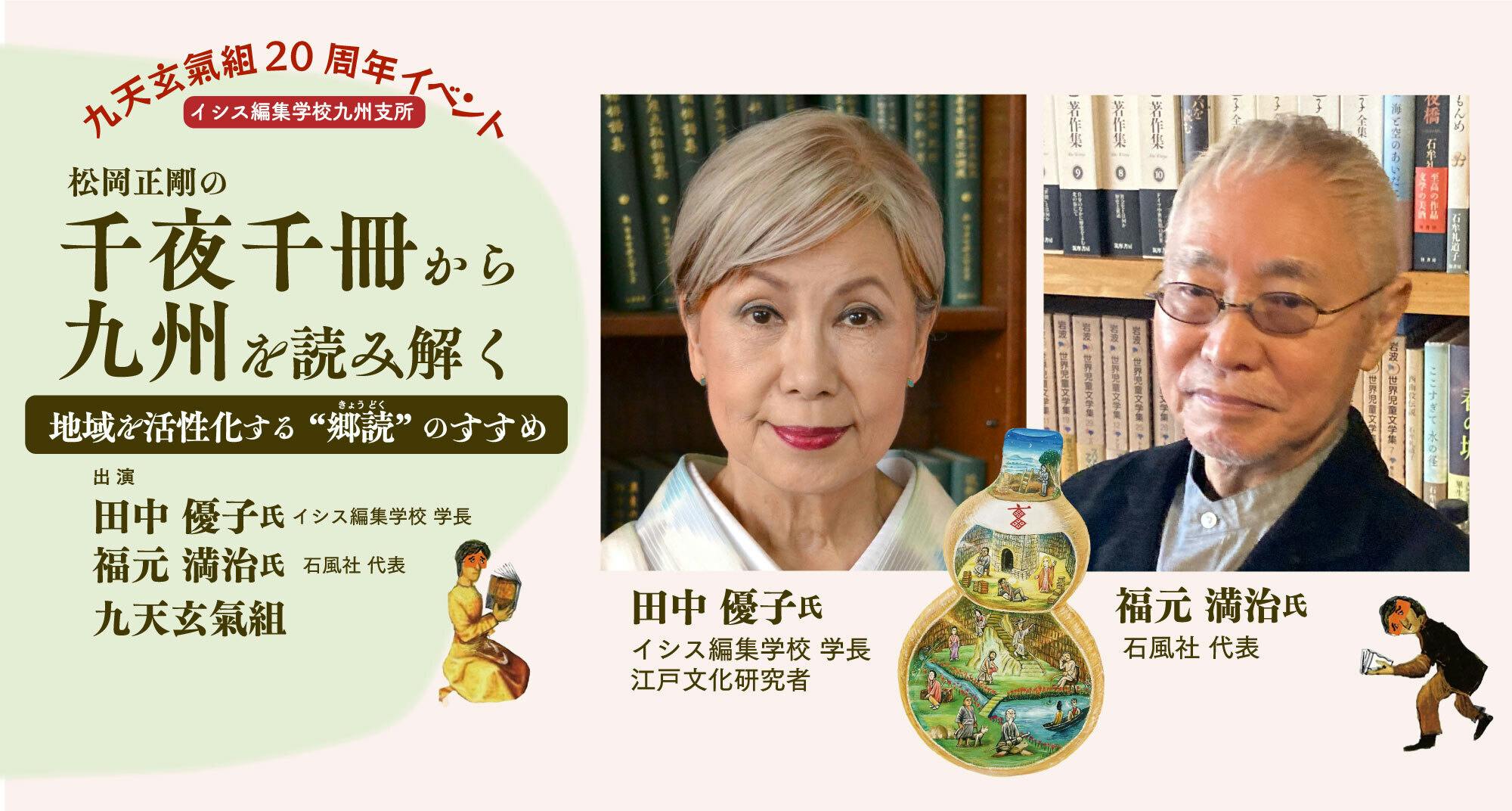 11月2日(日)、福岡市中央区天神のエルガーラホールにて、『九』刊行記念イベント「千夜千冊から九州を読み解く~地域を活性化する“郷読”のすすめ」を開催しました。田中優子さんは『春の城』や『苦海浄土』などの本に導かれ掴んだ島原天草一揆や水俣闘争を、福元満治さんは石牟礼道子さんとともにあった水俣や中村哲医師とのアフガニスタンの現場での体験をお話しくださり、本が持つ情報の広さと深さや、現場を知ったり誰かと交し合ったりすることで本に新たな意味が生じることなど感じる時間でした。ご支援くださったみなさま、ご参加くださったみなさまのおかげでこの場を持つことができました。ありがとうございました!