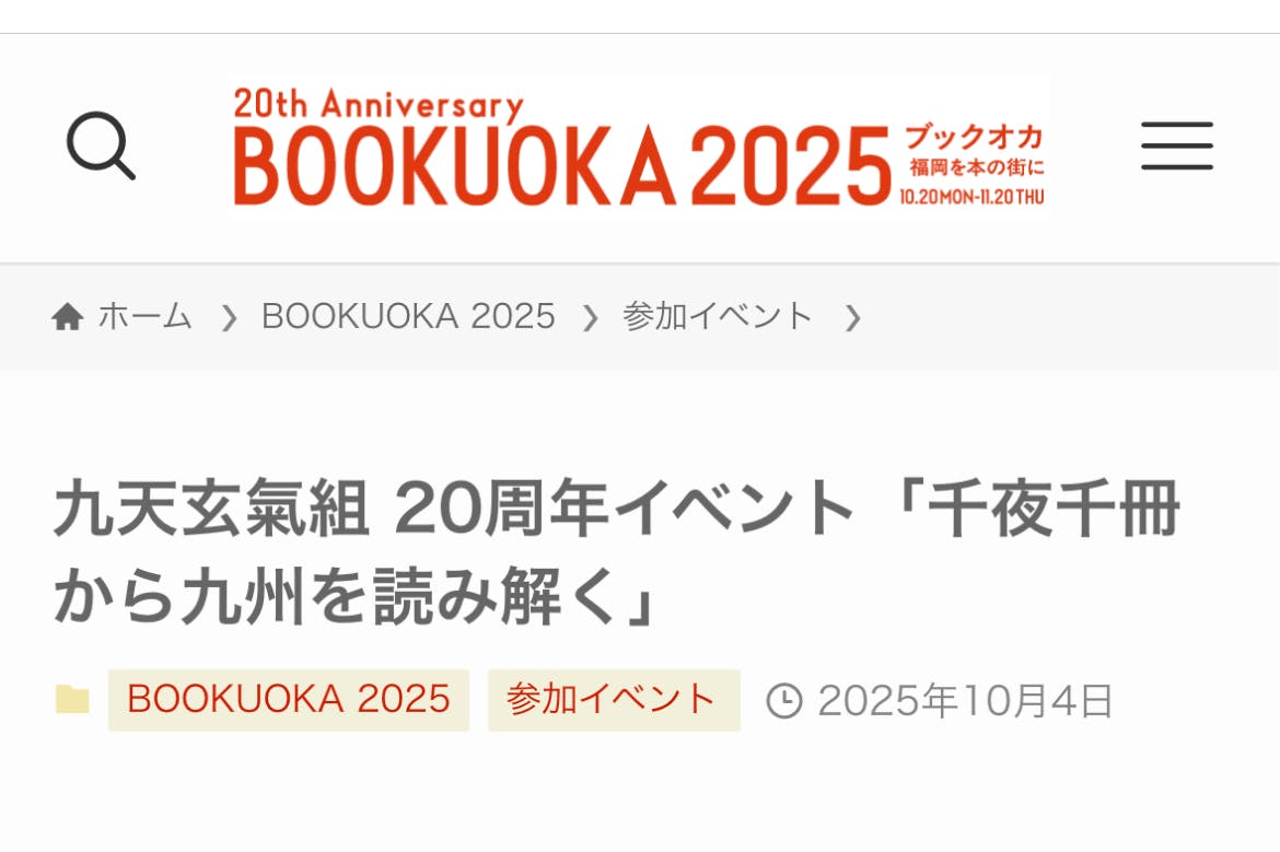 「のきさき古本市inけやき通り」はブックオカのメインイベント。公募による出店者が思い思いの古本を詰め込んだ1日古本店が軒を連ねます。https://bookuoka.com/archives/4599今年は九天20周年記念イベントと同じ11月2日に開催されます。秋の一日、赤坂けやき通りで青空古本市を楽しみ、午後から天神エルガーラの「 20周年イベント:千夜千冊から九州を読み解く」へとハシゴなさってはいかがでしょうか。(写真:2024年古本市の様子。今年の三十三冊屋出店はありません)イベント申し込みはこちら・オンライン配信もアリ