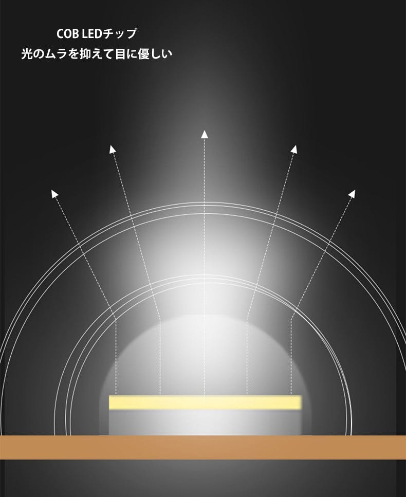 COB(三色組合)LEDチップを採用し、ただ明るいだけでなく、光のムラを抑えて目に優しい設計に。長時間の使用でも疲れにくく、安定した照射を実現します。