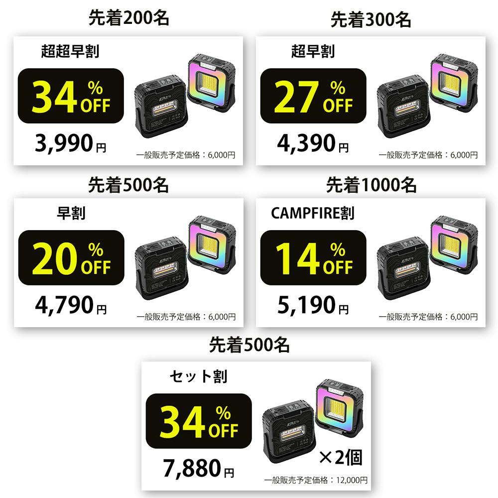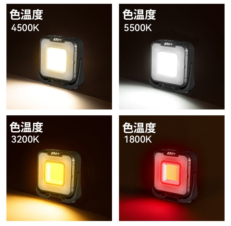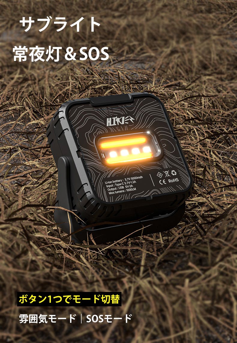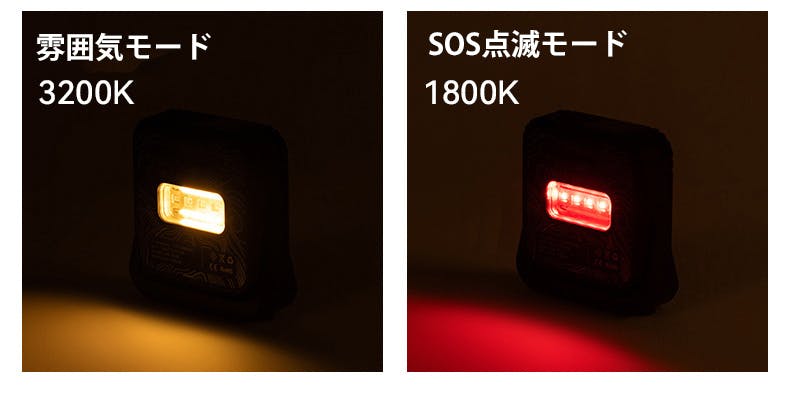 サブライトは、雰囲気モード(約3200Kのあたたかい光)と、赤色点滅のSOSモードの2種類に切り替え可能。リラックスタイムの間接照明としても、緊急時のサインとしても活躍する、シーンに応じて使い分けられる便利なライト機能です。