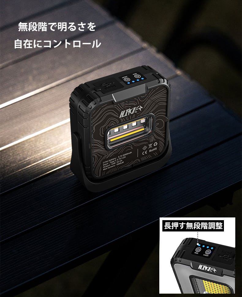 光量は無段階で調節できるため、キャンプ、読書、ナイトライトなど、あらゆるシーンにぴったりの明るさを実現します。