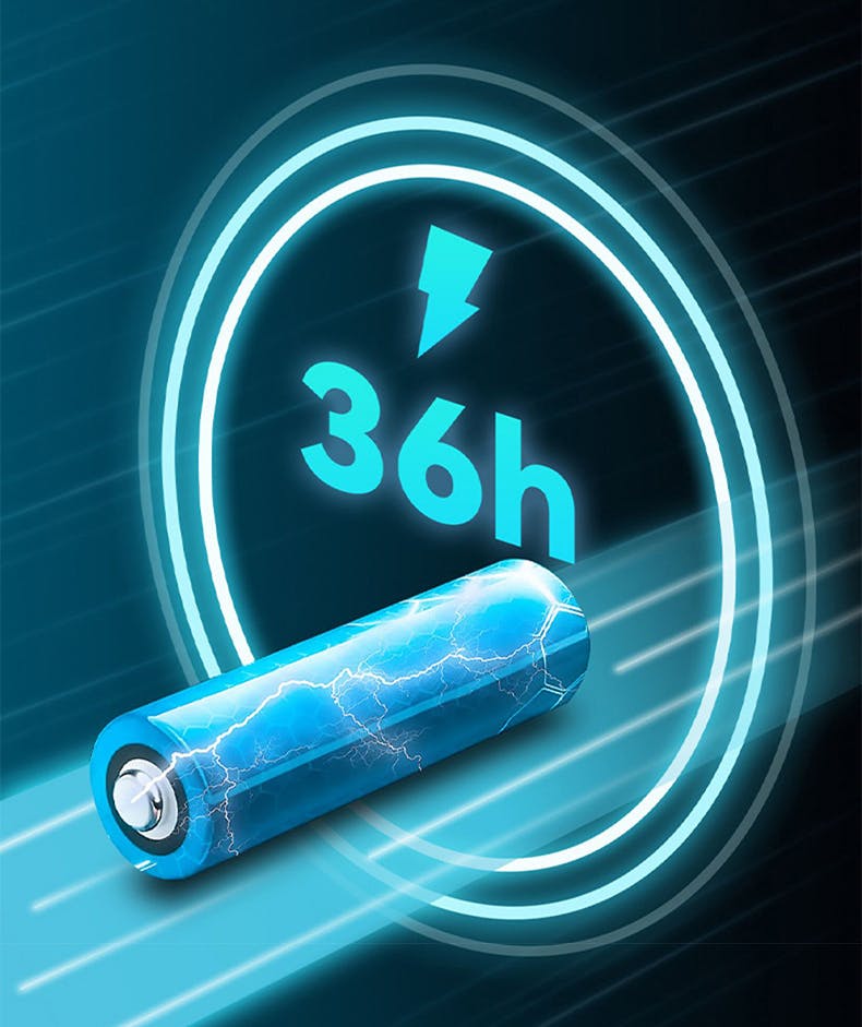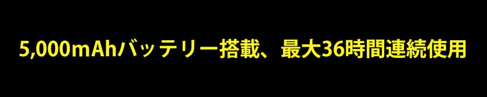 5000mAhの大容量バッテリーを搭載し、最大36時間の連続使用が可能。