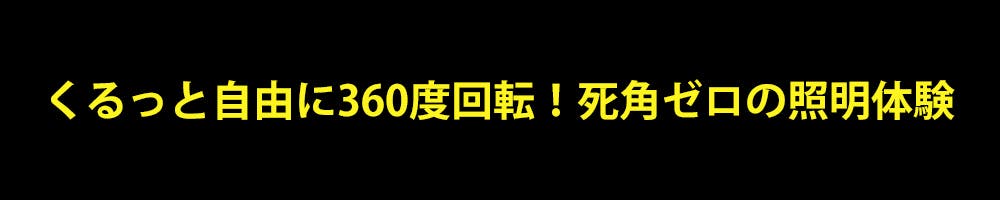 ヘッド部分は360度自由に回転可能。照らしたい方向にくるっと向けるだけで、細かい角度調整も思いのまま。テント内の天井照明としても、手元の作業灯としても活躍。死角を作らず、全方向に明かりを届けることができます。