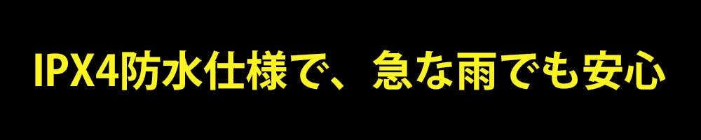 IPX4相当の防水性能を備えており、突然の雨や水しぶきにも対応可能。