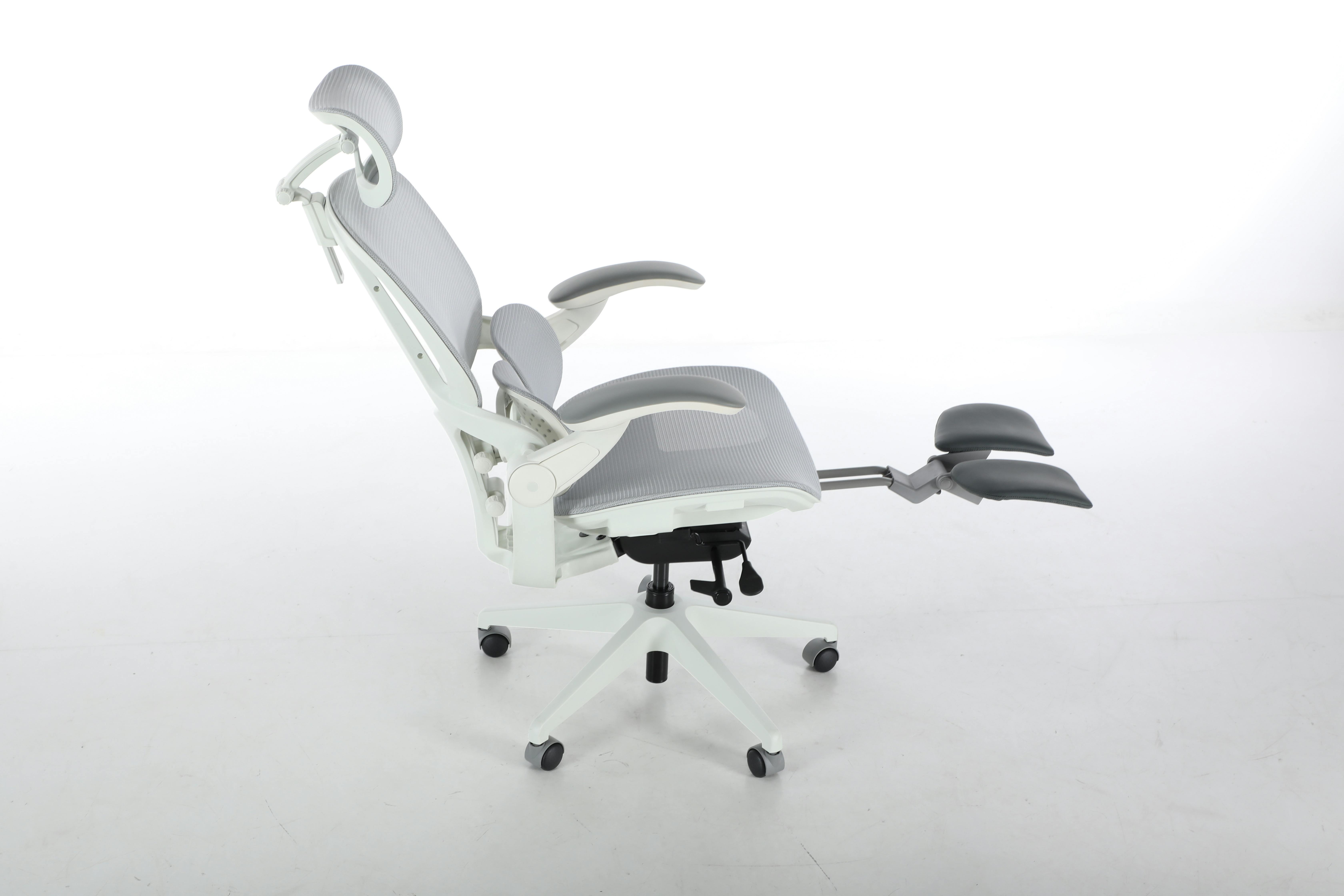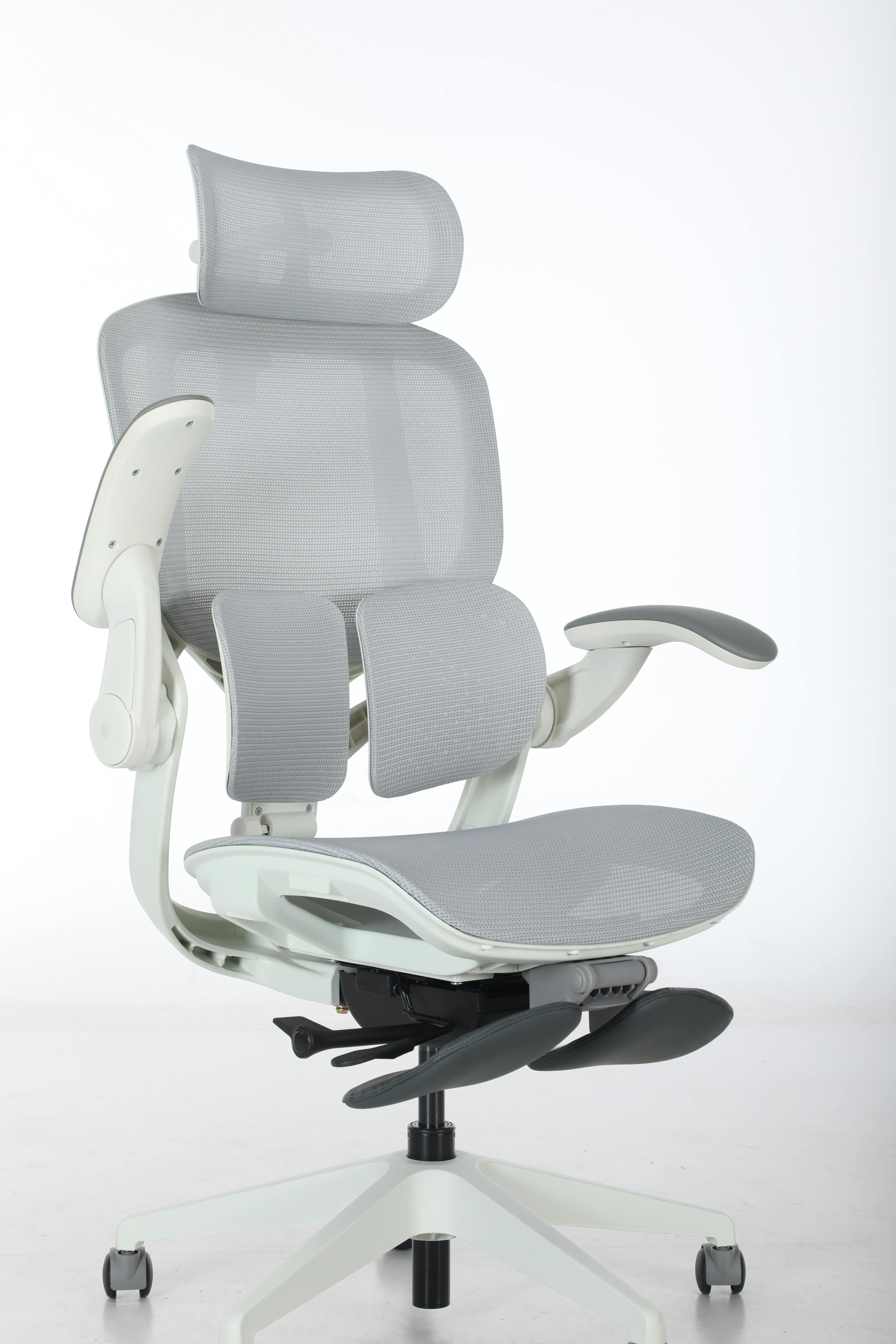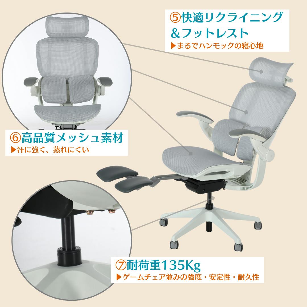 A:座面・背面には通気性と耐久性に優れたYM93メッシュを使用。4等級ガスシリンダーや高耐圧ナイロン脚で、135㎏の耐荷重で、長期間の使用にも耐えます。