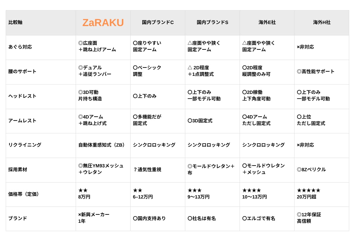そう、ZaRAKUは、まさにこれらのエルゴノミクスの要素をフル装備した、