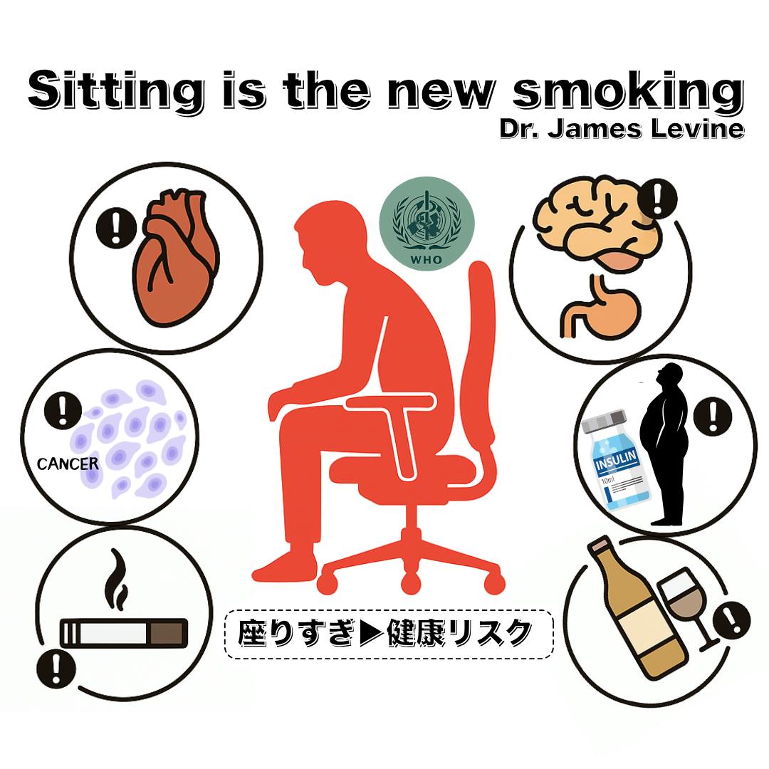 しかも、座りすぎは、喫煙や飲酒と同様に健康リスクを高める要因の一つ。