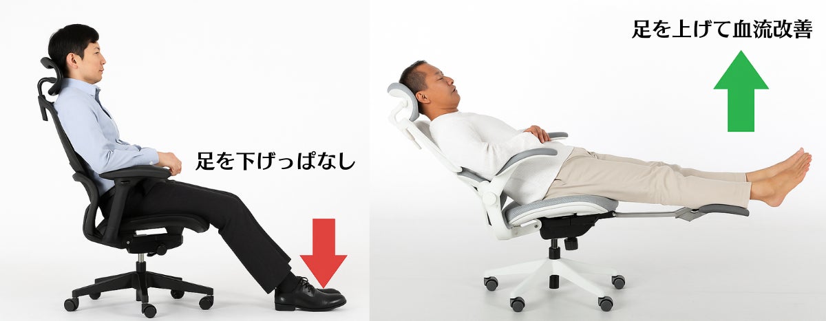 さらに、脚を床に下ろしたままでは血流が滞りやすく、むくみや疲労の原因となります。飛行機でよく聞くエコノミー症候群と似た状態です。最近では、1時間ごとに軽く体操を義務付ける企業もあるほど。