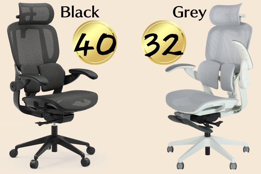 カラーのお好みとしては、Blackが40脚、Greyが32脚。