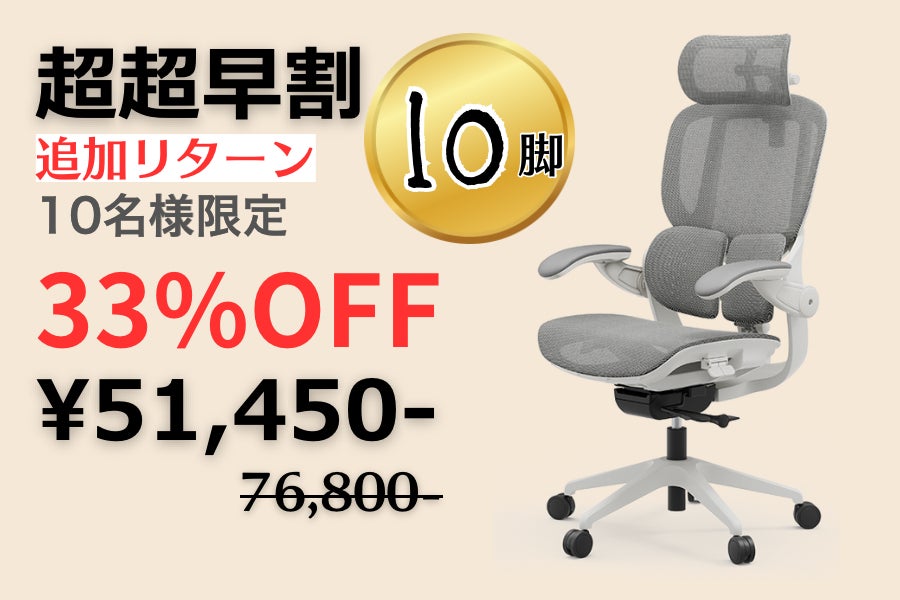 公開終了まであと1日となりました。好評につき2回目の公開を予定はしていますが、先にご支援くださった皆様の、いわゆる先行利益を守る意味でも、例えば、超超早割33%OFF51,450円で支援購入できる機会は今しかありません。ご検討中の皆様お見逃しなく!今回の公開中、ゲーミングチェアとの比較をさまざまな角度でご案内してきました。「長時間座っても楽」をコンセプトに設計されていることは確かですが、「腰、肩、首までサポートする」設計はZaRAKUのみだと信じています。ご検討中の皆様お見逃しなく!