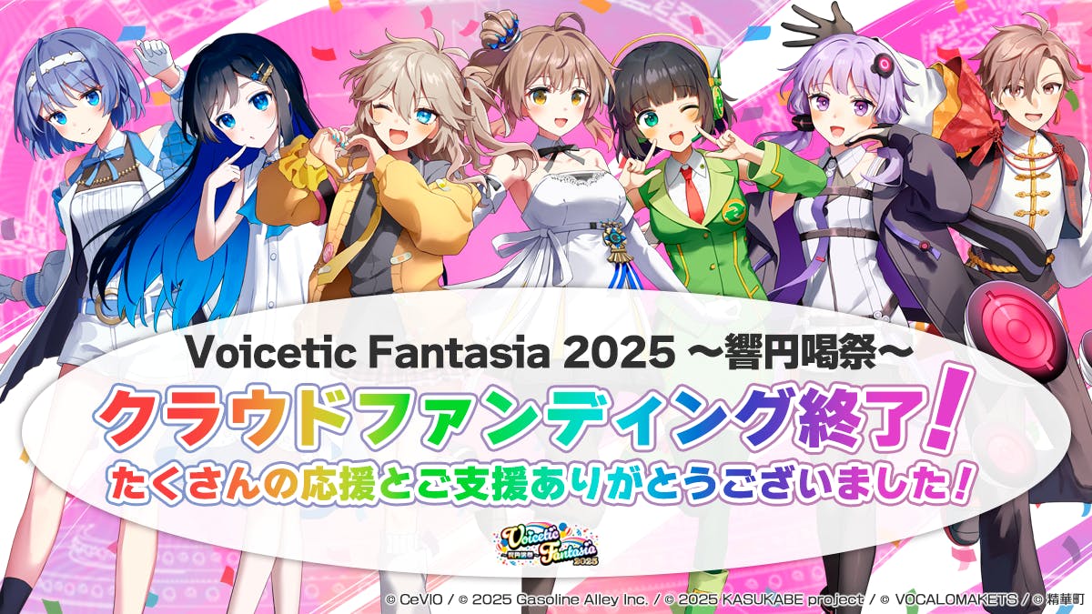 2025年8月31日23:59をもちまして、『Voicetic Fantasia 2025 ~響円喝祭~』の開催を目指すためのクラウドファンディングプロジェクトが終了となりました。