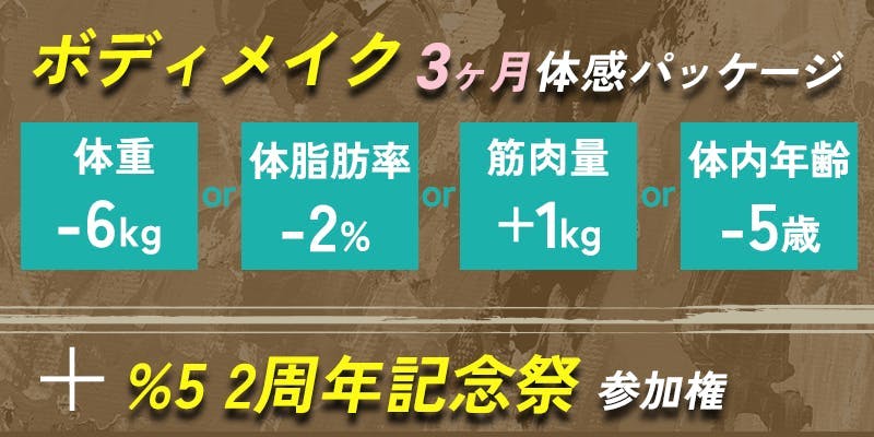 「ボディメイク・3ヶ月実践プログラム」+%5 2周年記念祭参加権 |