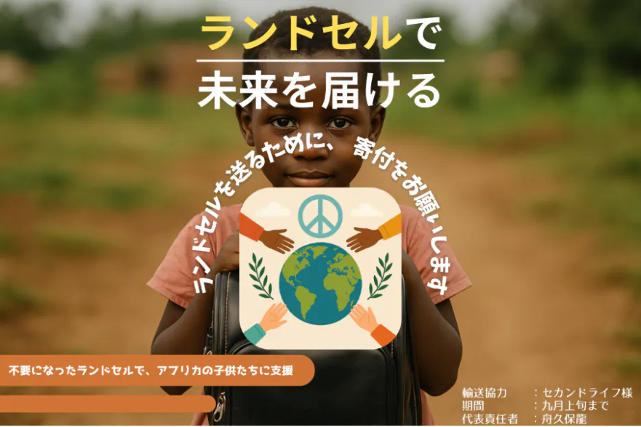 2026/03/22 23:33この度は、本活動にご関心・ご協力いただきありがとうございました。まず、活動報告が大幅に遅れてしまったことをお詫び申し上げます。当初は早期にご報告を行う予定でしたが、回収・整理・手続き等に時間を要し、結果としてご報告が遅れてしまいました。本活動では、地域の皆さまや学校のご協力のもと、ランドセルを回収することができました。また、クラウドファンディングも無事終了し、ランドセル発送費をまかなうご支援をいただきました。回収したランドセルは、NPO法人セカンドライフ様を通じて、海外の子どもたちへ届けられます。最後になりますが、本活動にご協力いただいた皆さまに心より感謝申し上げます。また、報告が遅れてしまったことを改めてお詫び申し上げます。 もっと見る