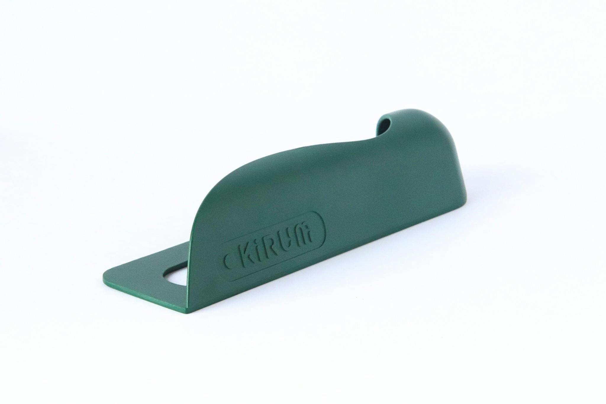 「KIRUM」は、内装職人が壁紙や床材をカットする際に、カッターから指や手を守るための切創防止具です。