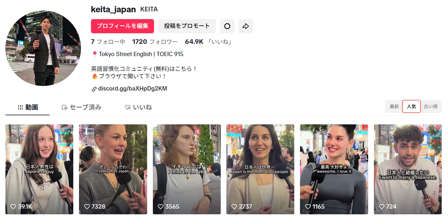 TikTokで外国人インタビューを投稿しているクリエイターで