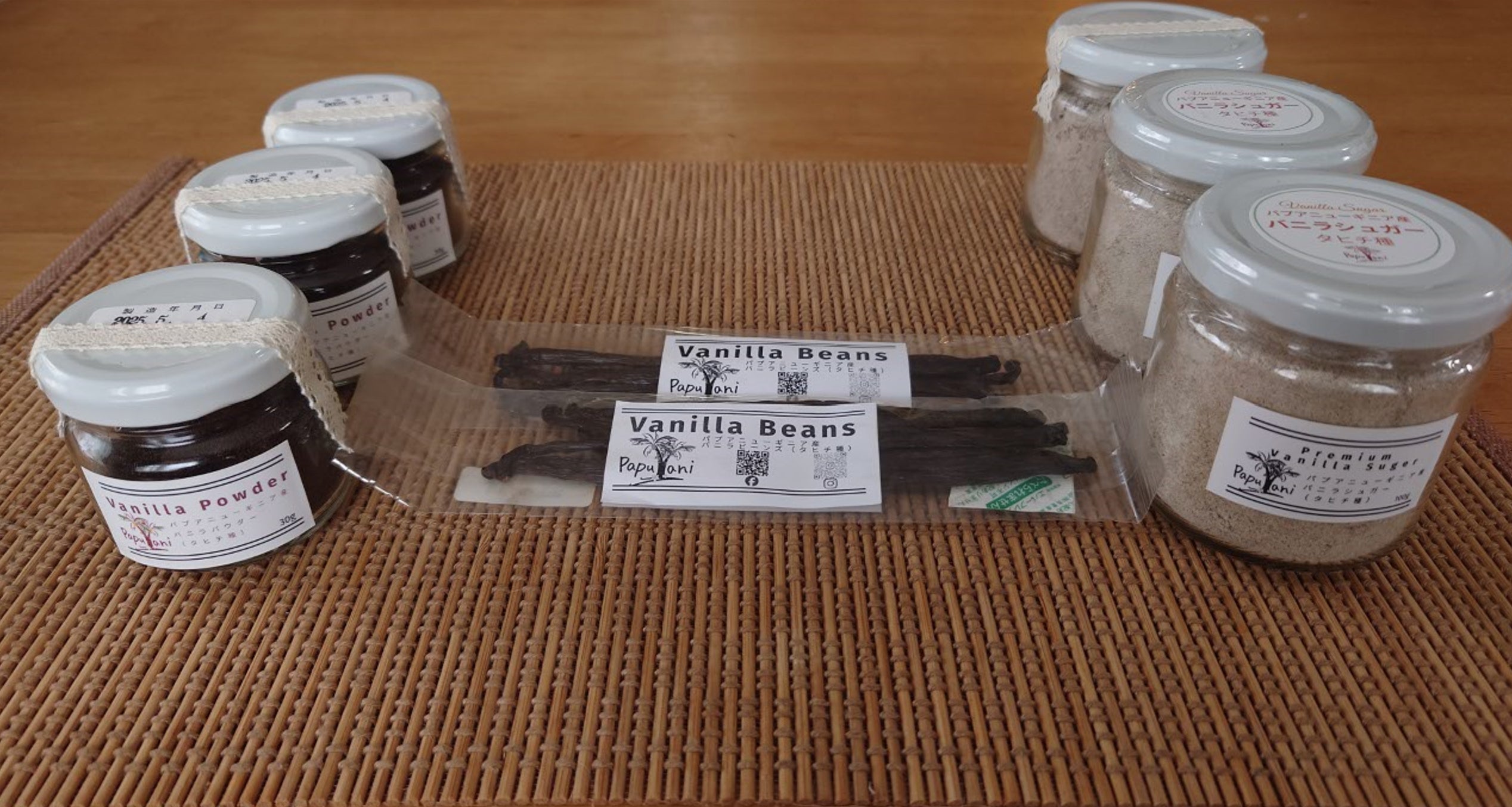 (PapuVaniで売っているバニラビーンズ、バニラパウダー、バニラシュガーです)