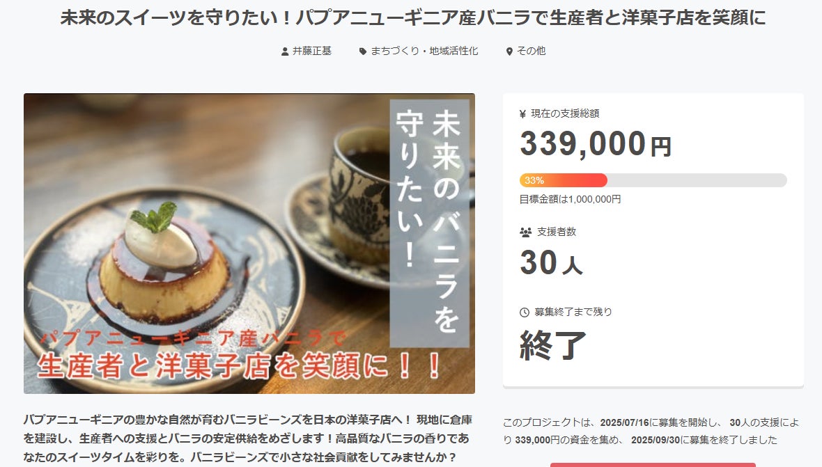 また、バニラビーンズの生産地であるパプアニューギニアのオロ州は、私たち以外に買い付けに来るバイヤーはほとんどいません。現地の生産者の生活を守るためにも是非プロジェクトを成功させたいと考えています!