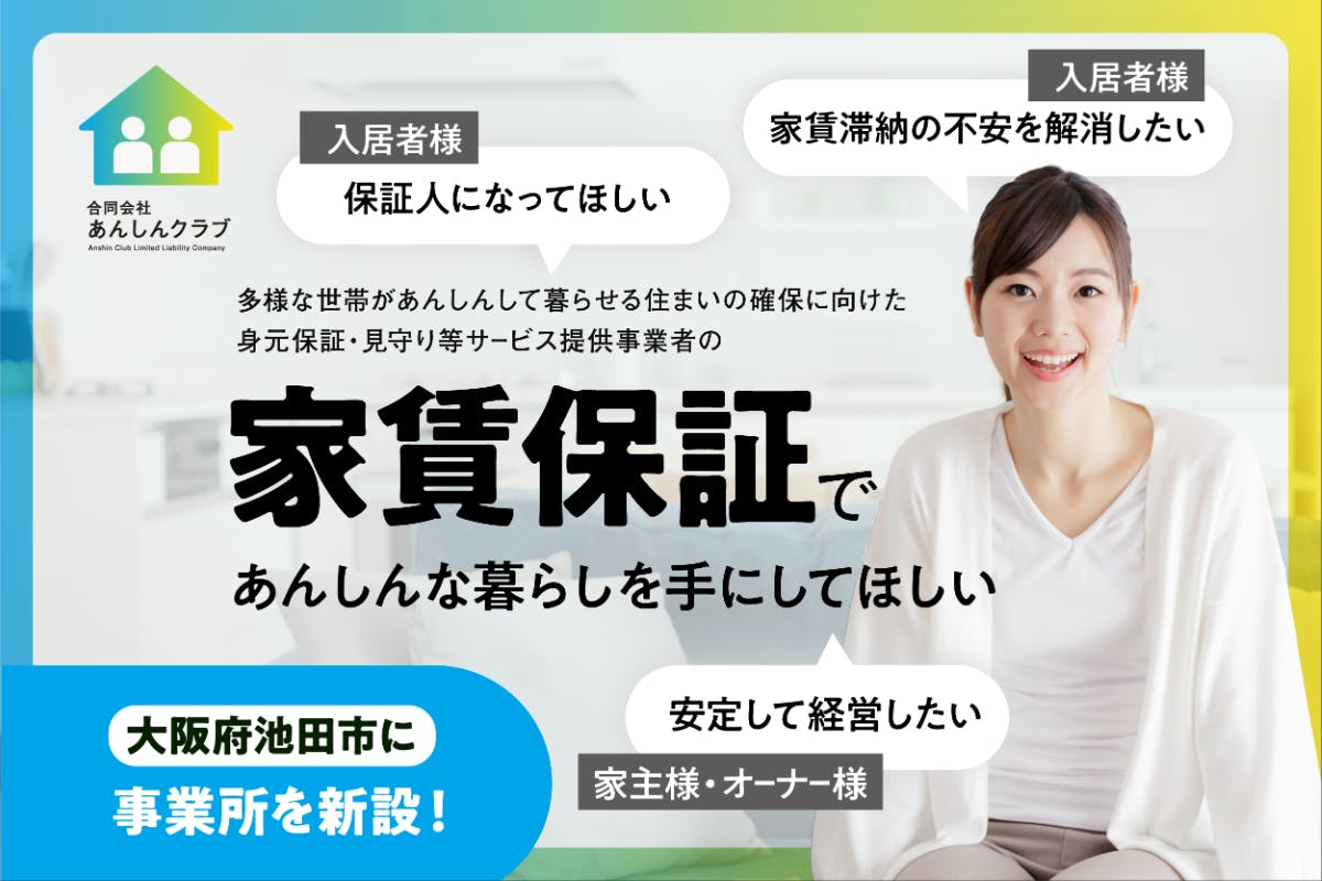 このような社会状況の中で、不動産業界と生活援助での勤務経験を活かし、家賃保証サービスという面から、まずは事業所である池田北摂周辺の方があんしんして生活する基盤を整え、生活の困りごとをサポートする体制を提供してまいります。