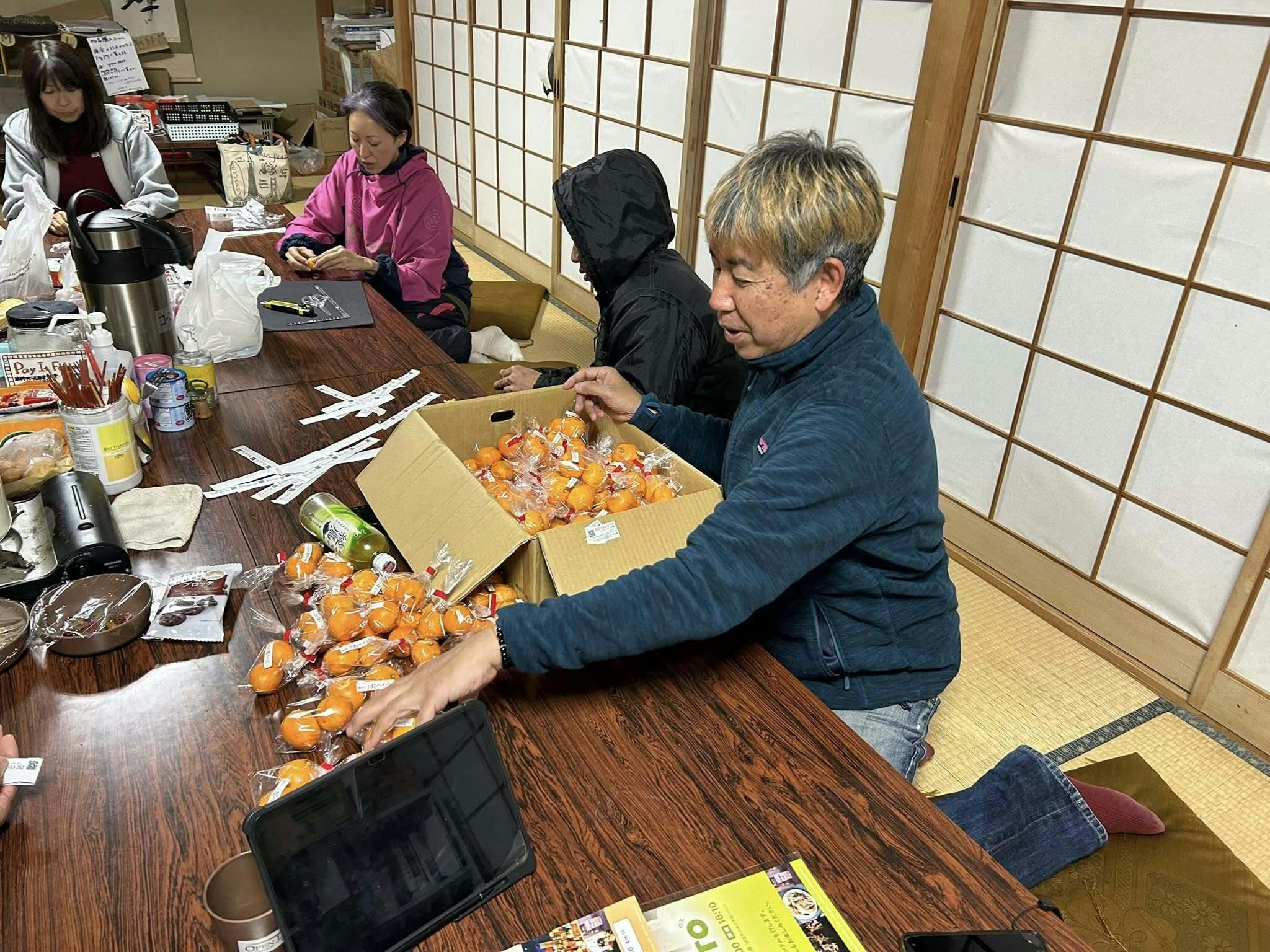 まわり、合計約400世帯の皆さんに、お菓子とみかんをお届けしました。