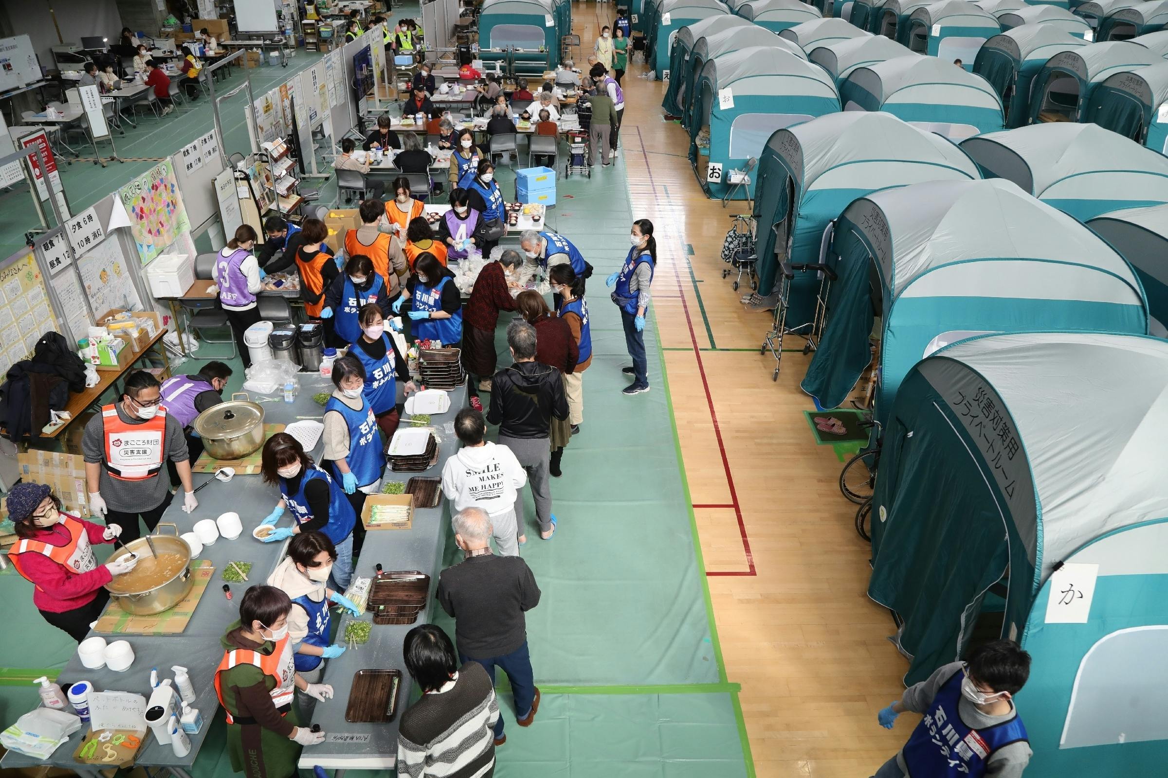 つまり、「避難所でテントを組み立てる」という光景は、