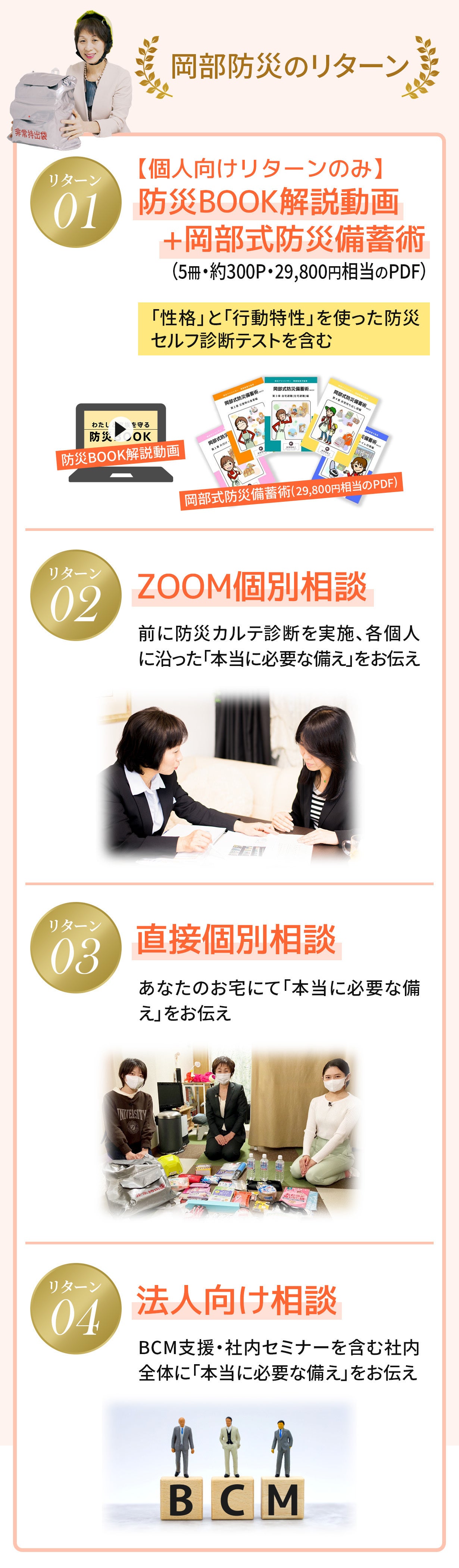 どんな家庭にもフィットし、いざという時に確実に役立つ「現実対応型の防災」です。