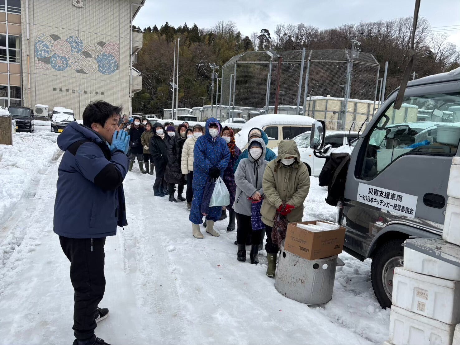 石川県輪島市でのキッチンカーによる炊き出し支援。珠洲市4万食(自費)、輪島市10万食(政府支援)、累計14万食を支援しました。
