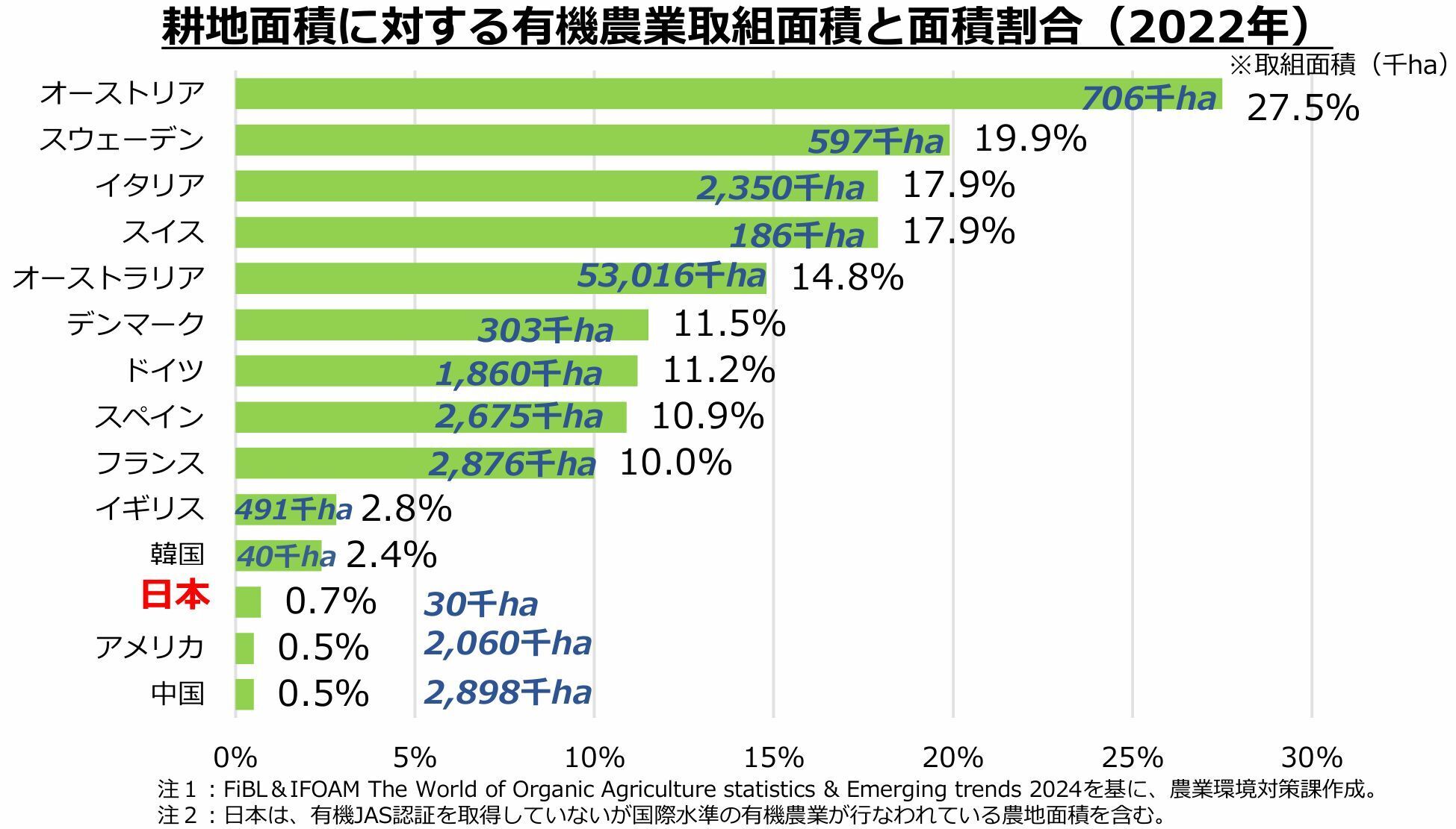 2022年の日本の有機農業取組割合は、わずか0.7%です。