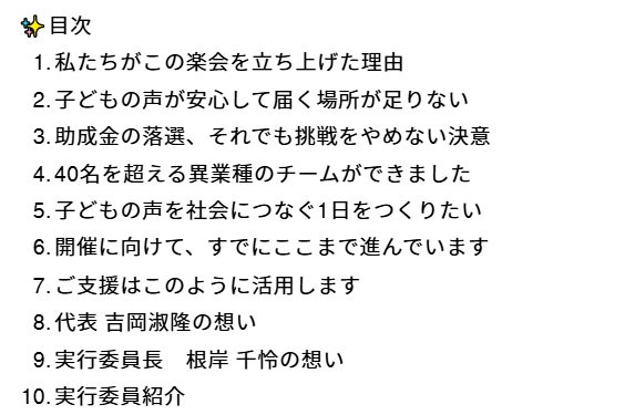 その声に大人が耳を傾け、行動しなければ、何も変わりません。この会は、子どもたちの声に応える第一歩です。
