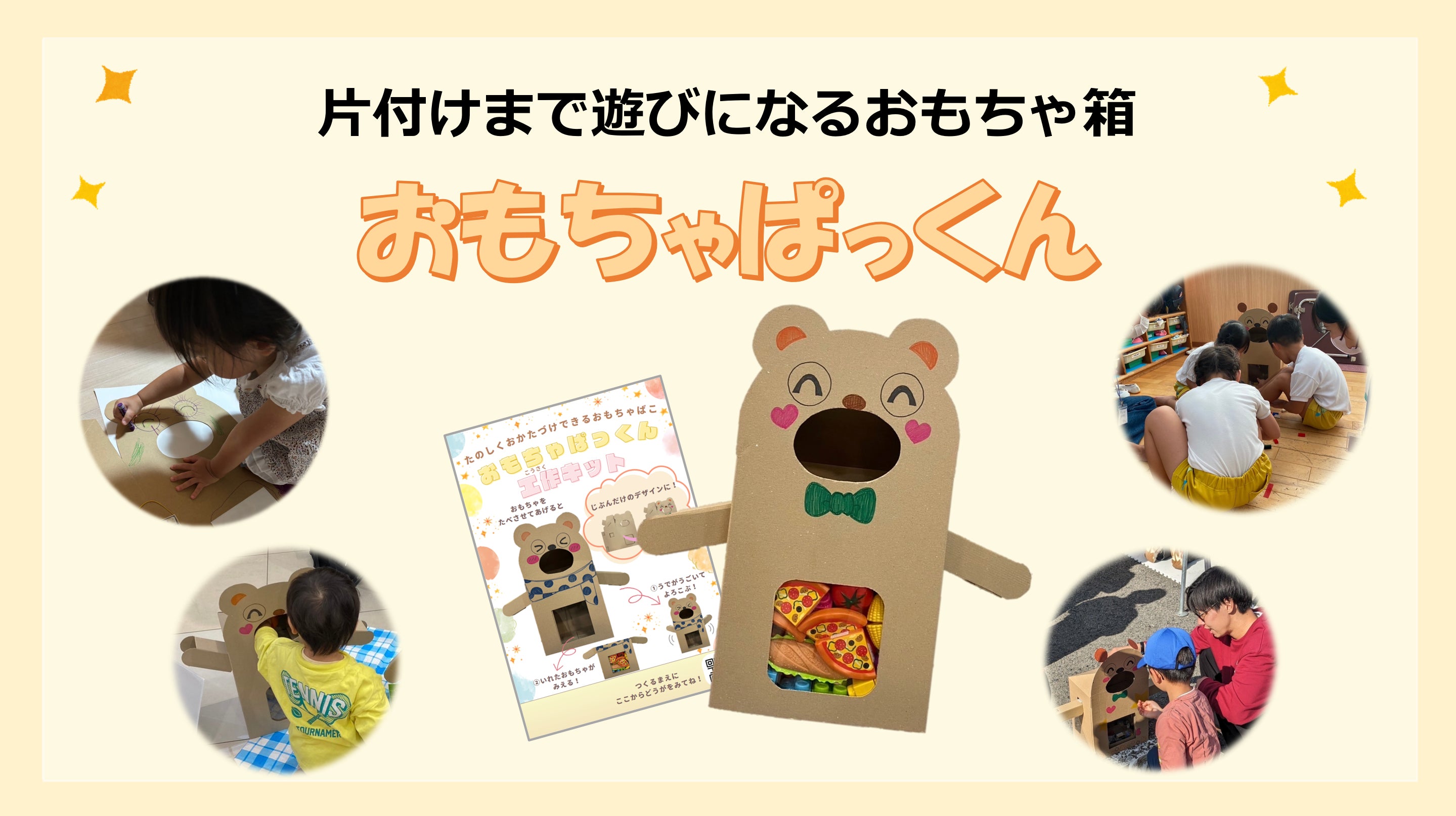 おもちゃ箱を子供自身が作成することで愛着が湧き段ボールでも大切に使用し、楽しく片付けの習慣を身につけることができる商品です!
