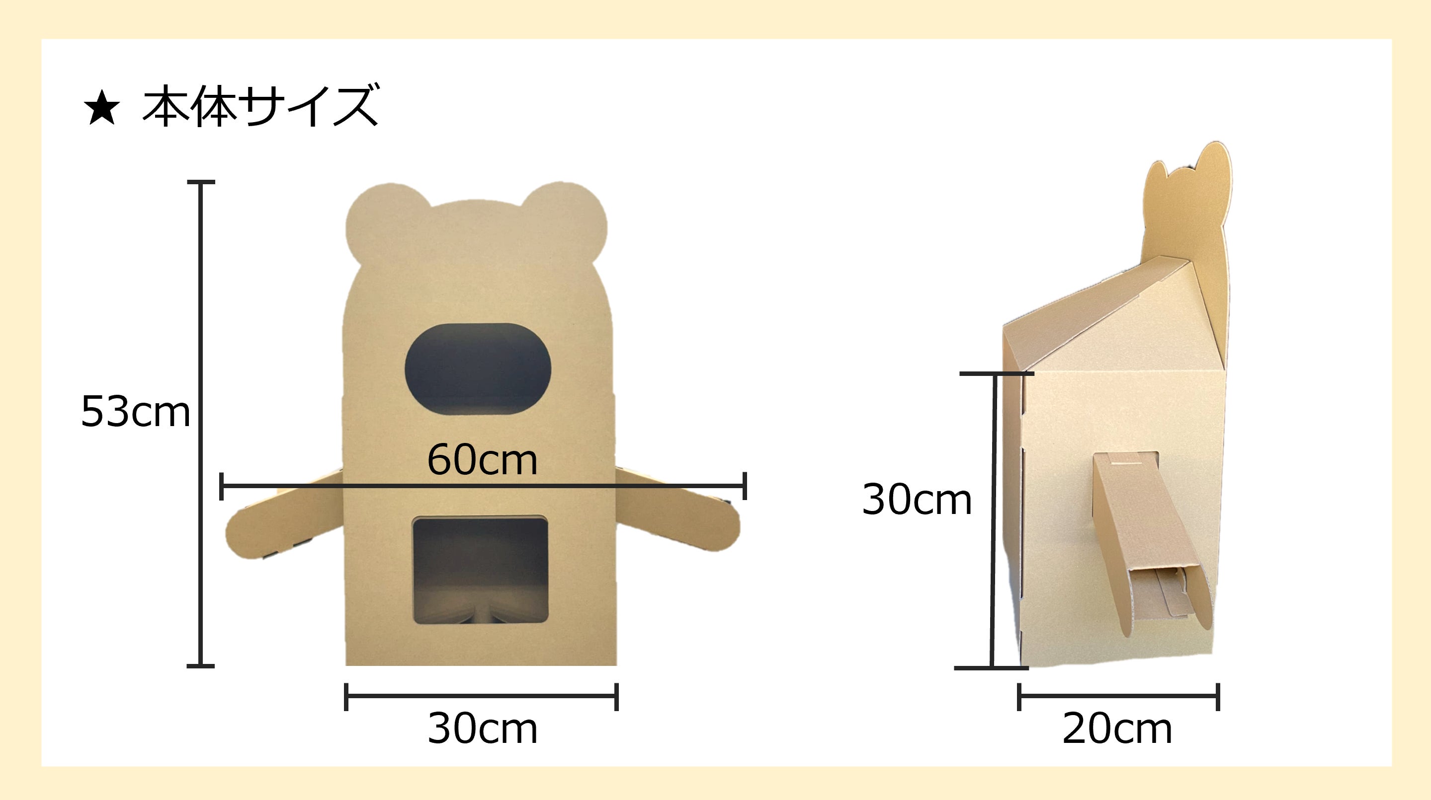 ①本体、②腕、③内箱、④クリアシートの4点セットで、それぞれを組み立てることでおもちゃ箱完成します。
