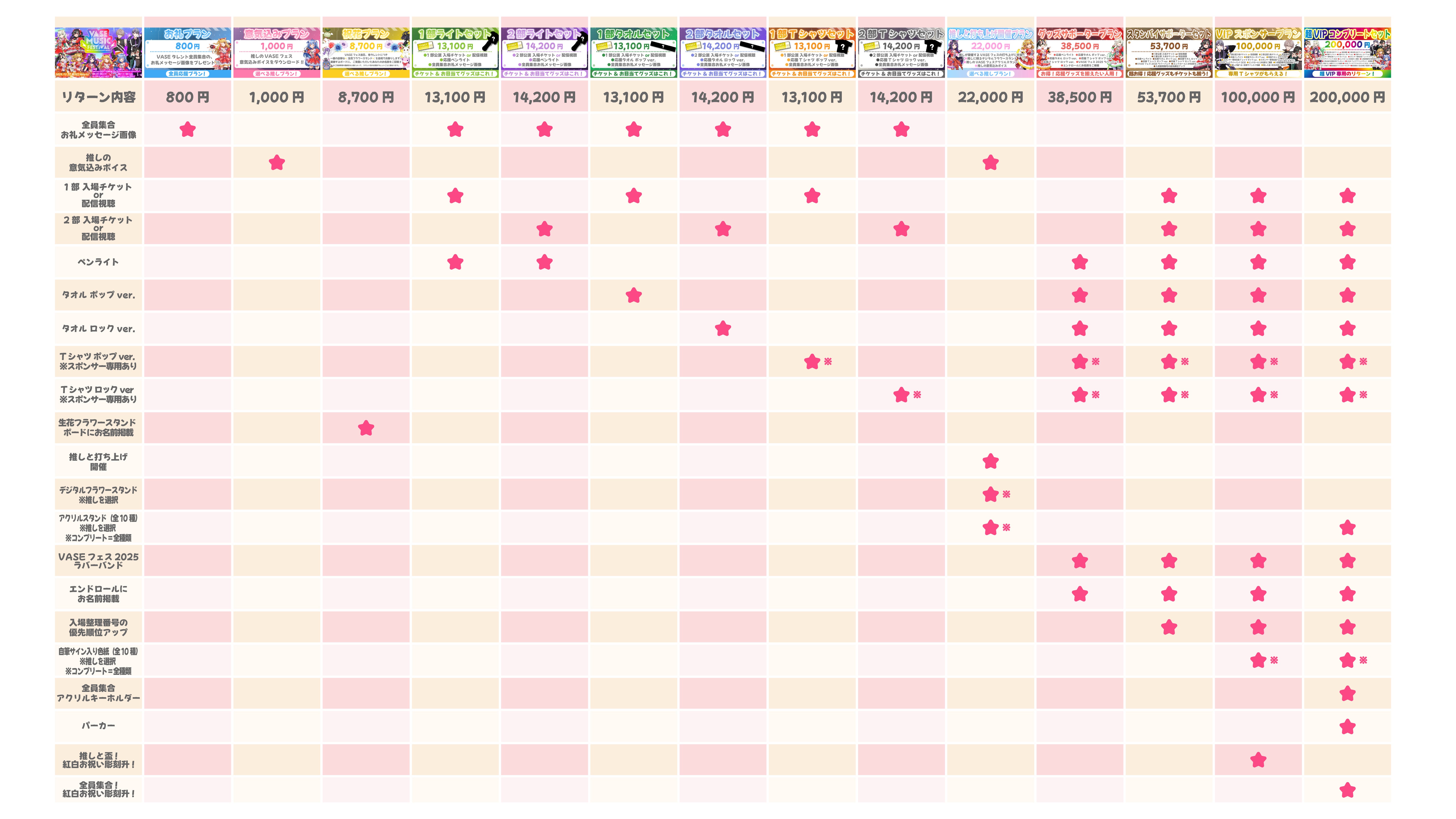 ★リターンコース別に含まれる、VASEフェス2025応援グッズはこちら!