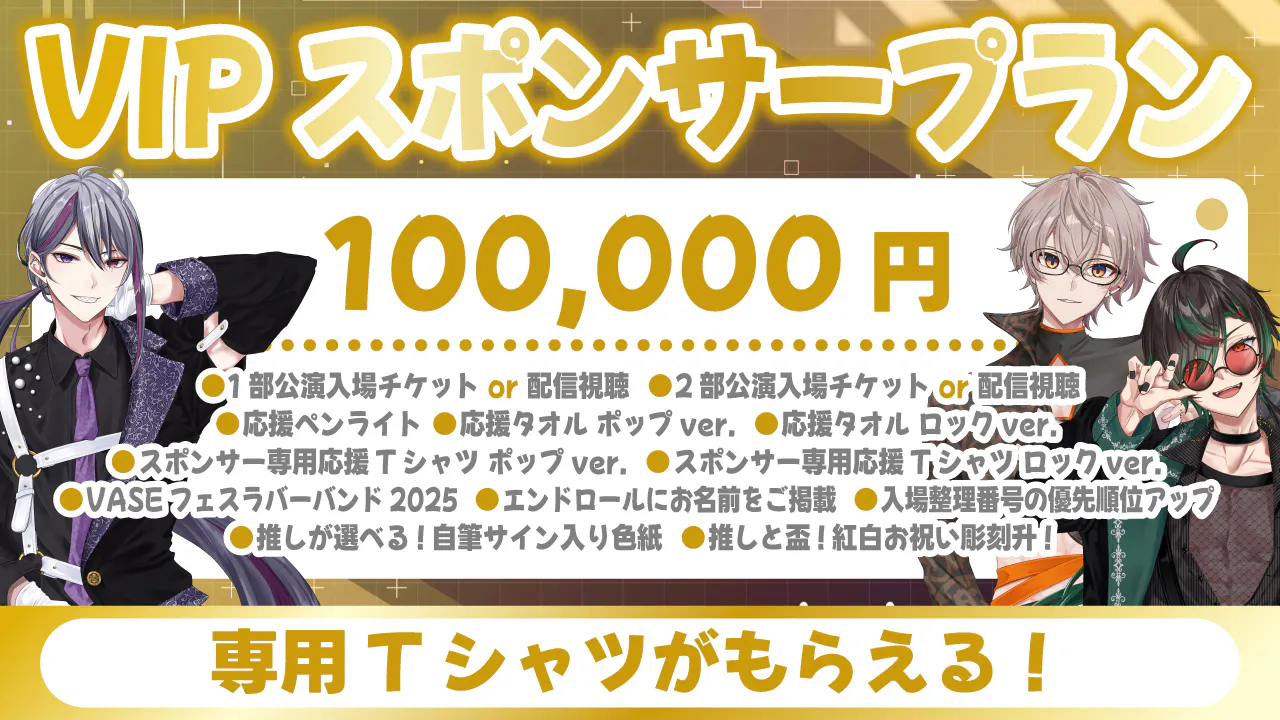★15)VIPプラン!専用Tシャツがもらえる!『スポンサーセット』