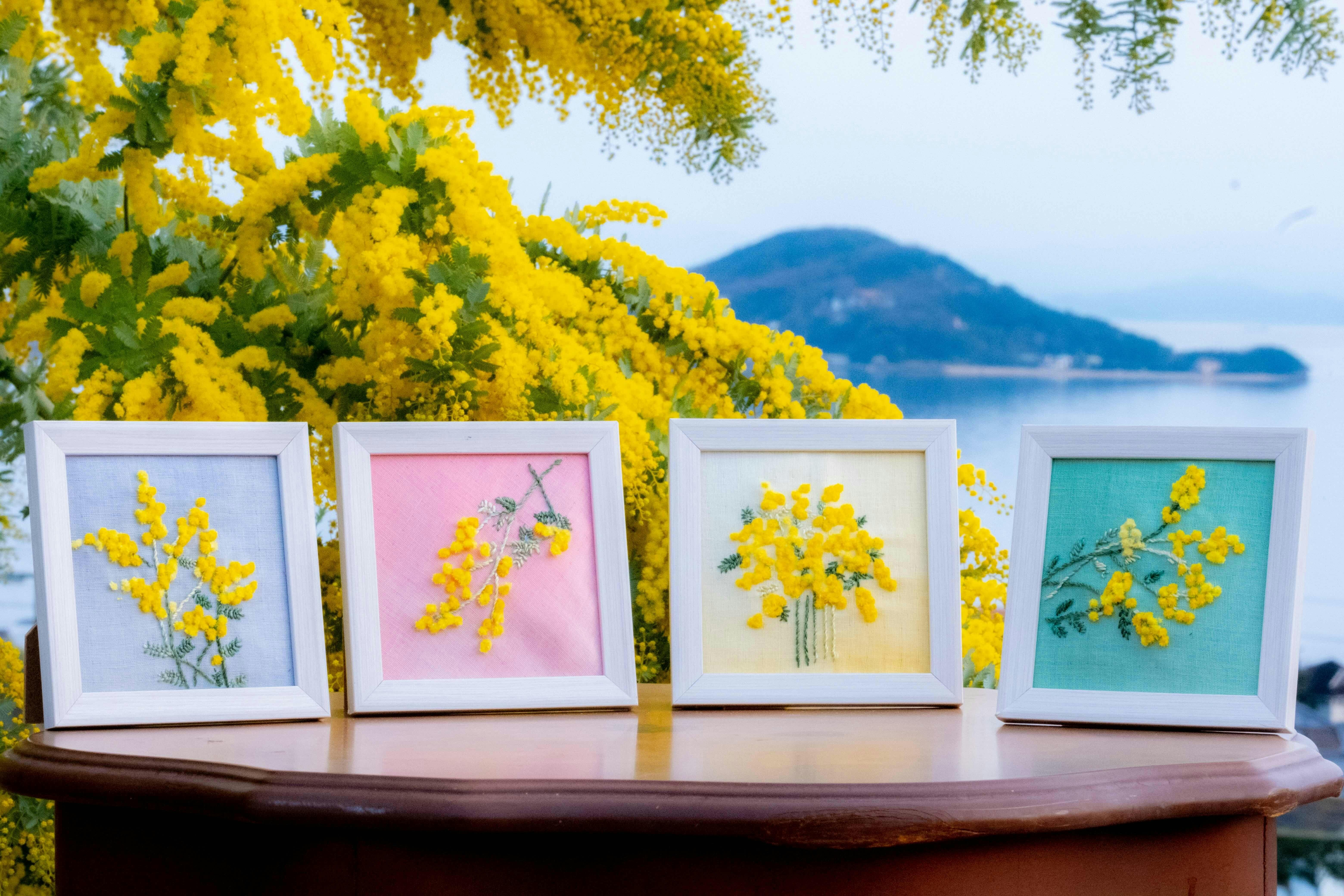 小豆島の春のミモザを思い浮かべながら、あなただけの刺繍作品を仕上げてみませんか?はじめての方でも簡単、サポートもございますので、この機会にぜひ一ついかがでしょうか。