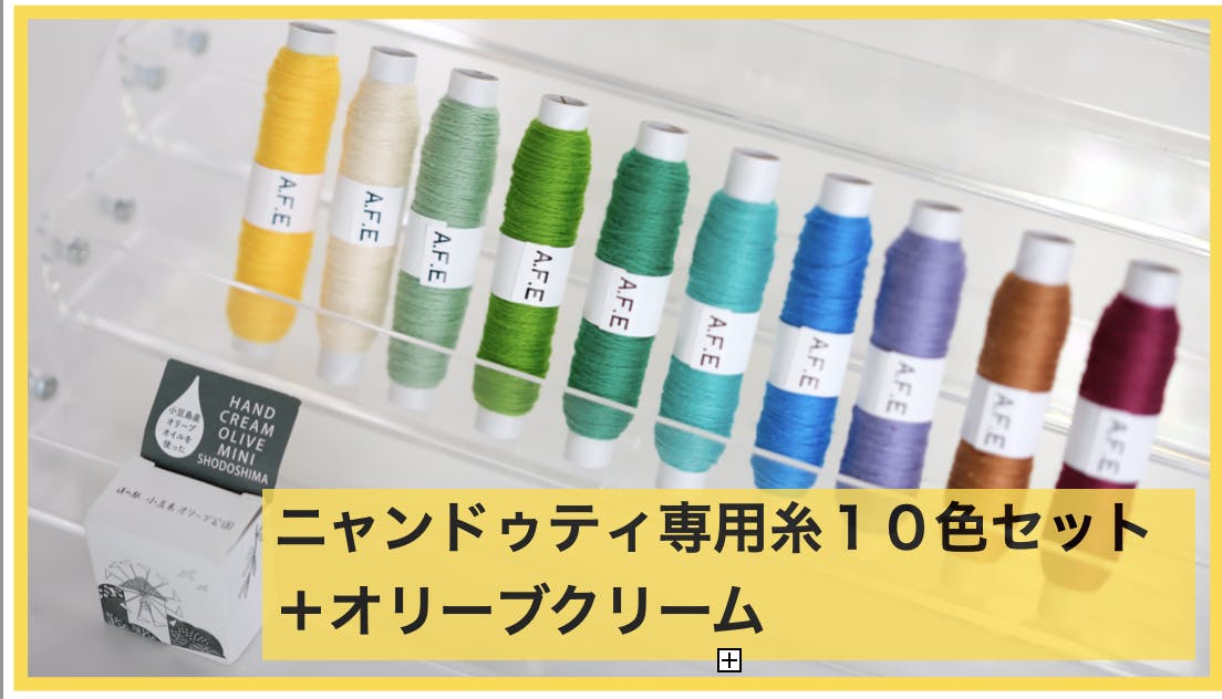 このクリームを、新クラウドファンディングのリターン「限定新色ニャンドゥティ糸10本セット」に組み入れさせていただきました。糸の発送とともに皆さまへお届けいたします。