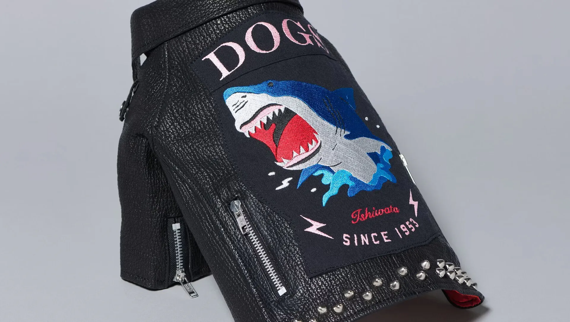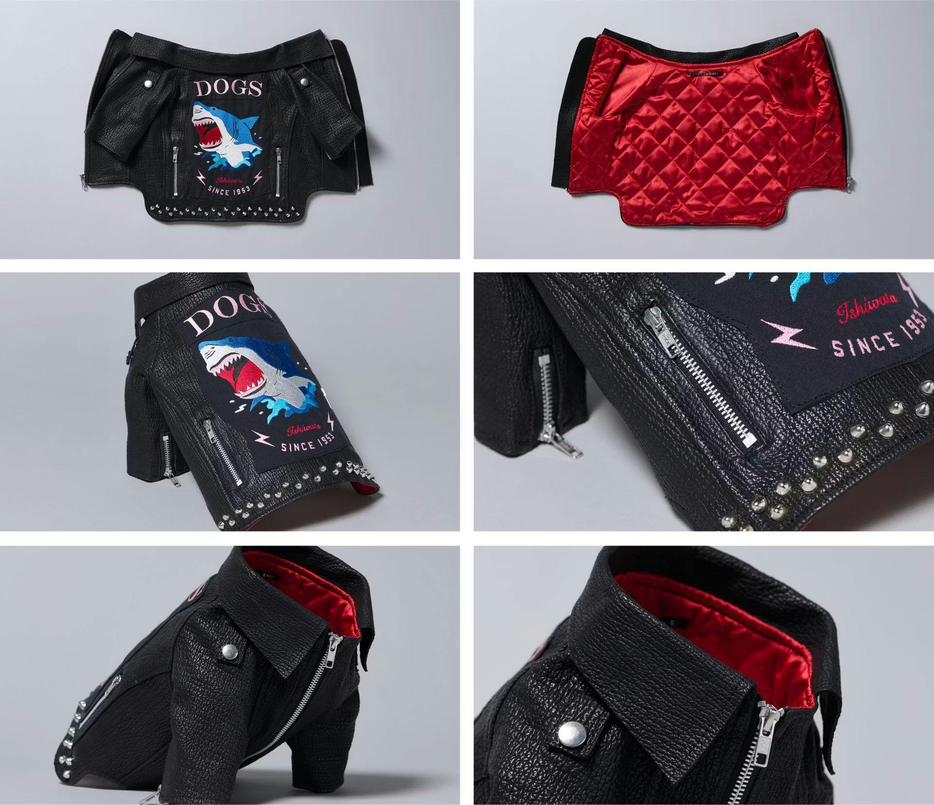 ①犬用サメ革ライダースジャケット(刺繍カスタム)1着